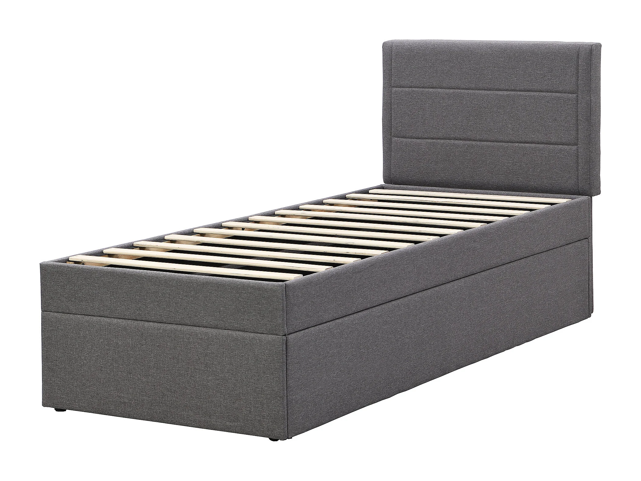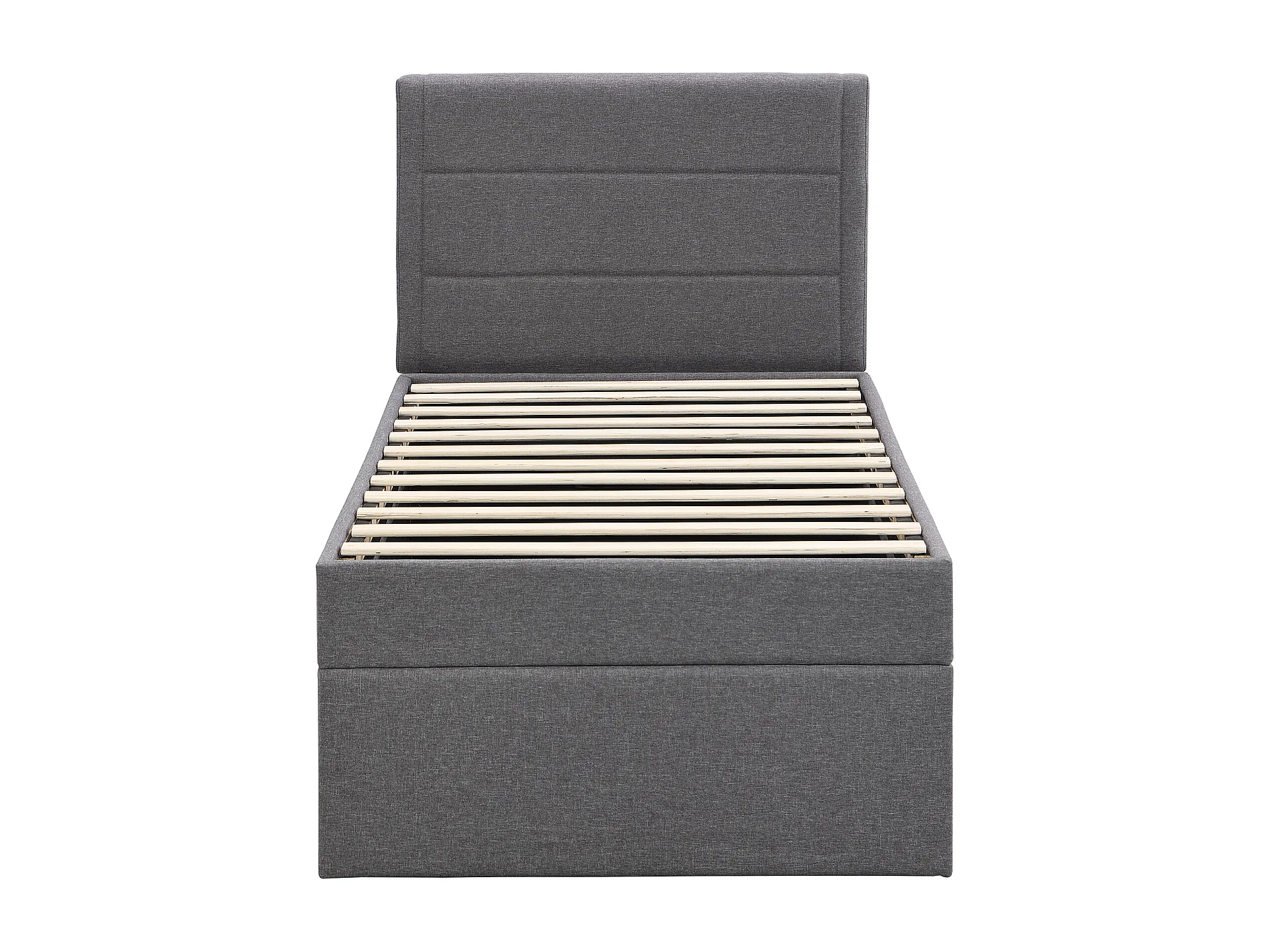 Lit coffre 90x200 cm - Lit enfant avec sommier à lattes - lin gris - sans matelas