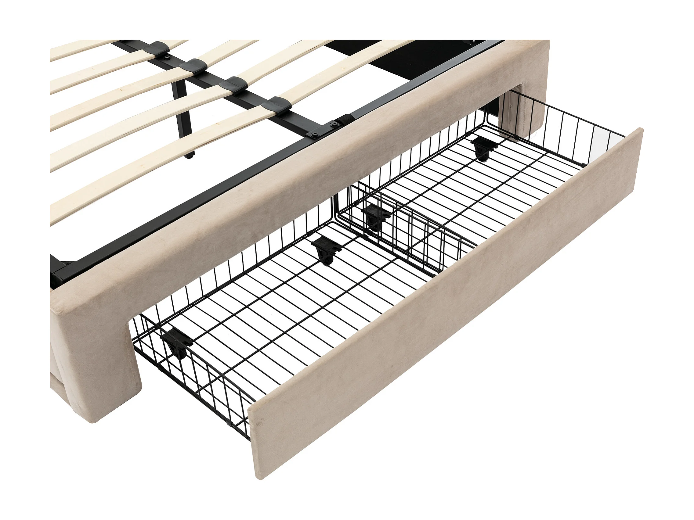 Lit Coffre 140x190cm,Lit Double Avec 2 Tiroirs De Rangement Et LED,Sommier à Lattes, Velours, Beige