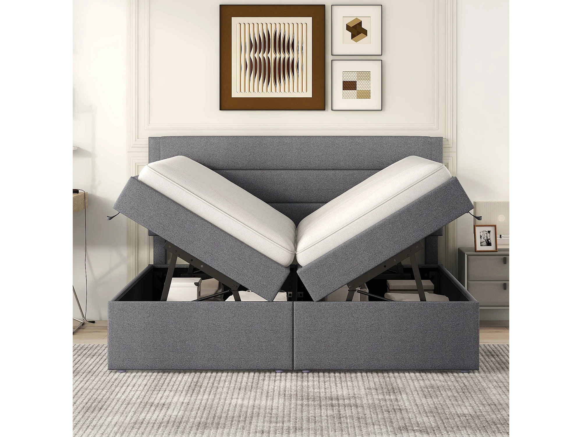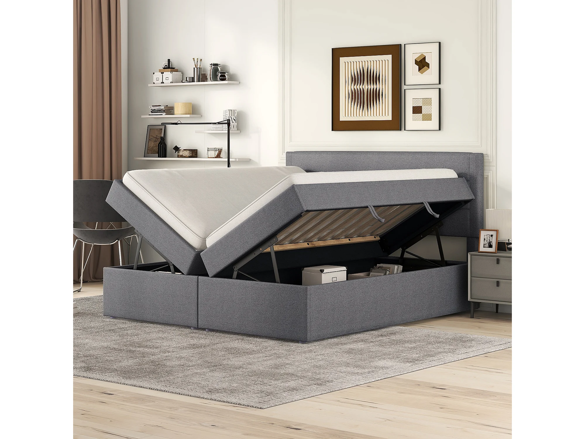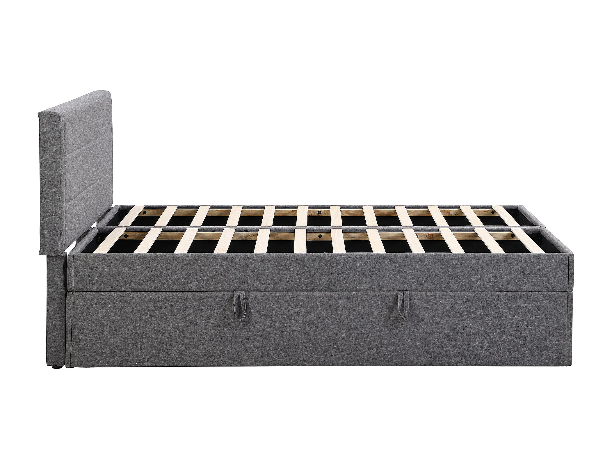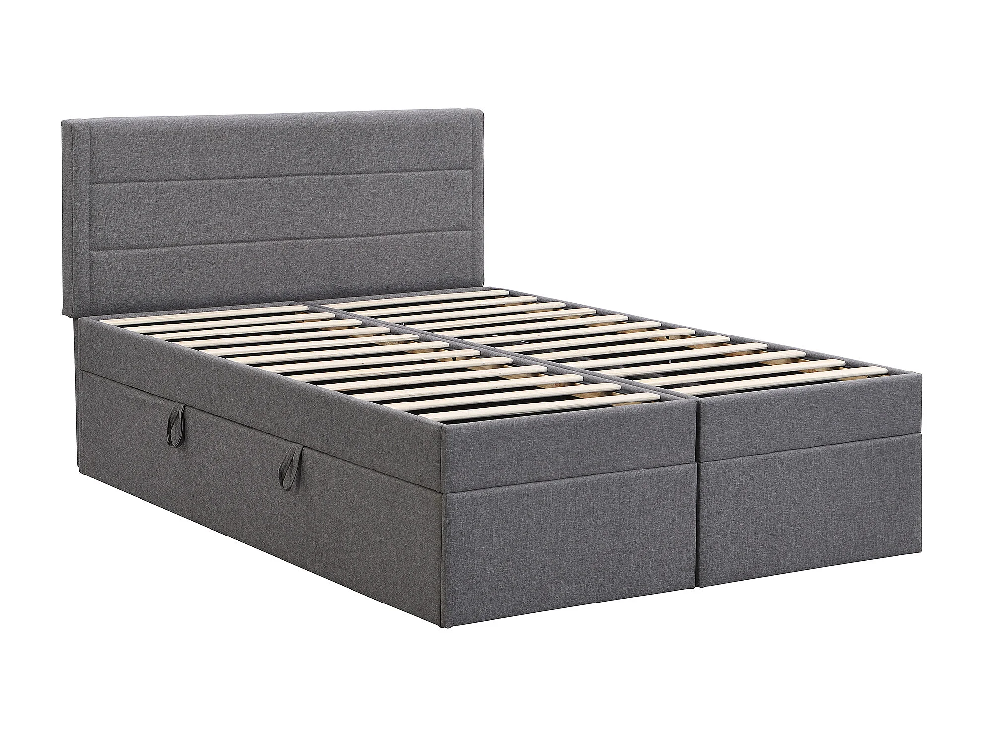 Lit double 140x200 cm avec grand espace de rangement, ouverture bilatérale, bois et MDF, gris (Sans matelas)