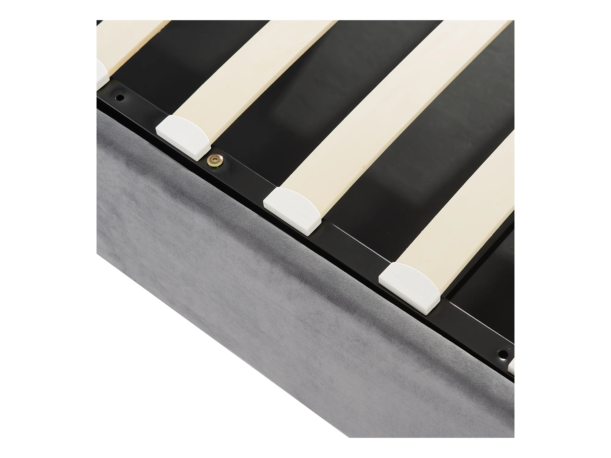 Lit coffre 140x200 cm avec sommier à lattes - tête de lit rembourré et velours - gris (sans matelas)