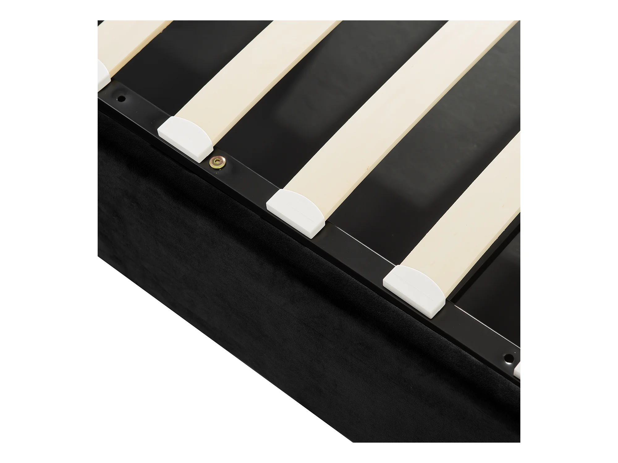 Lit coffre 140x200 cm avec sommier à lattes - tête de lit réglable en hauteur - velours noir (sans matelas)