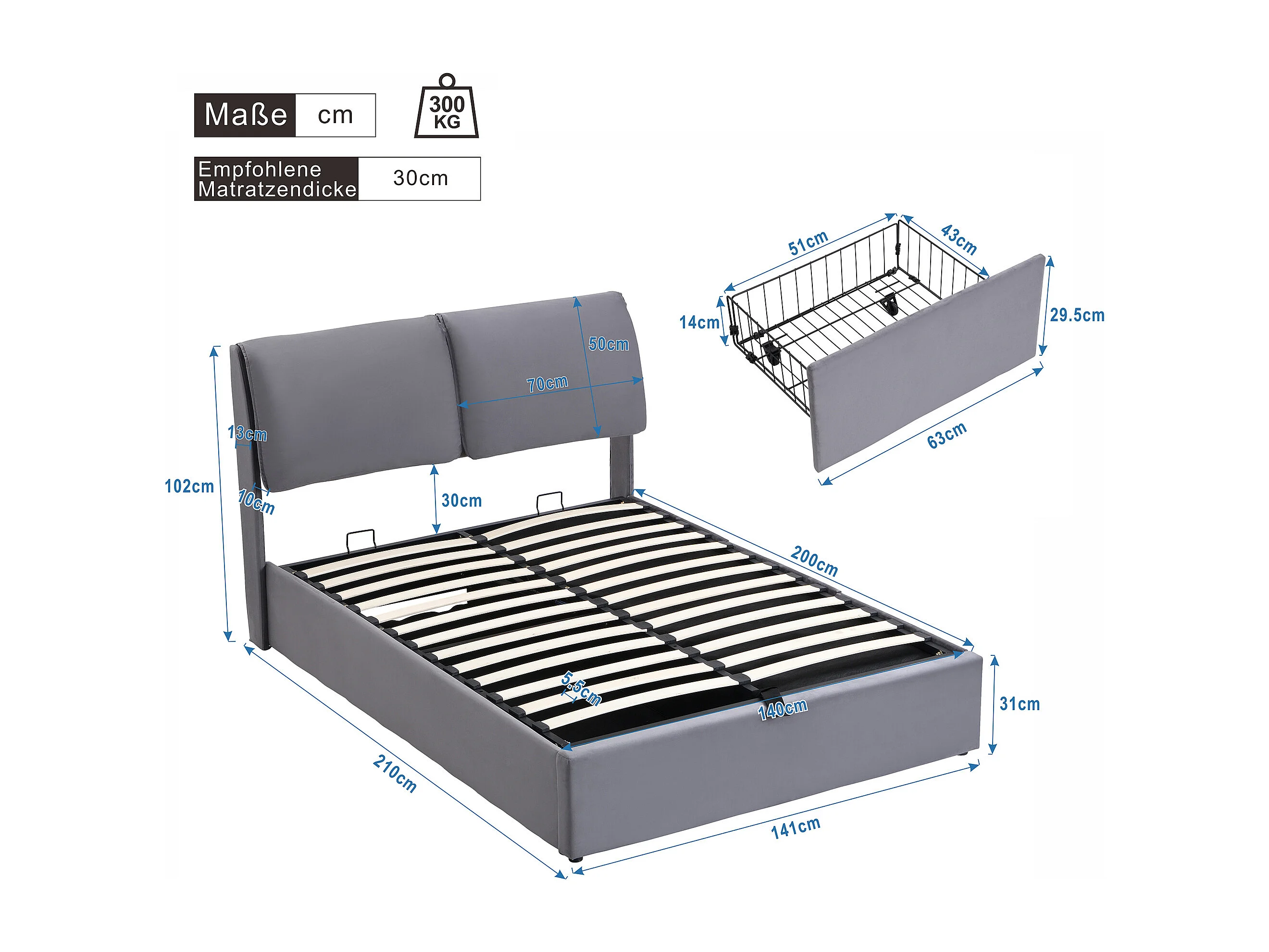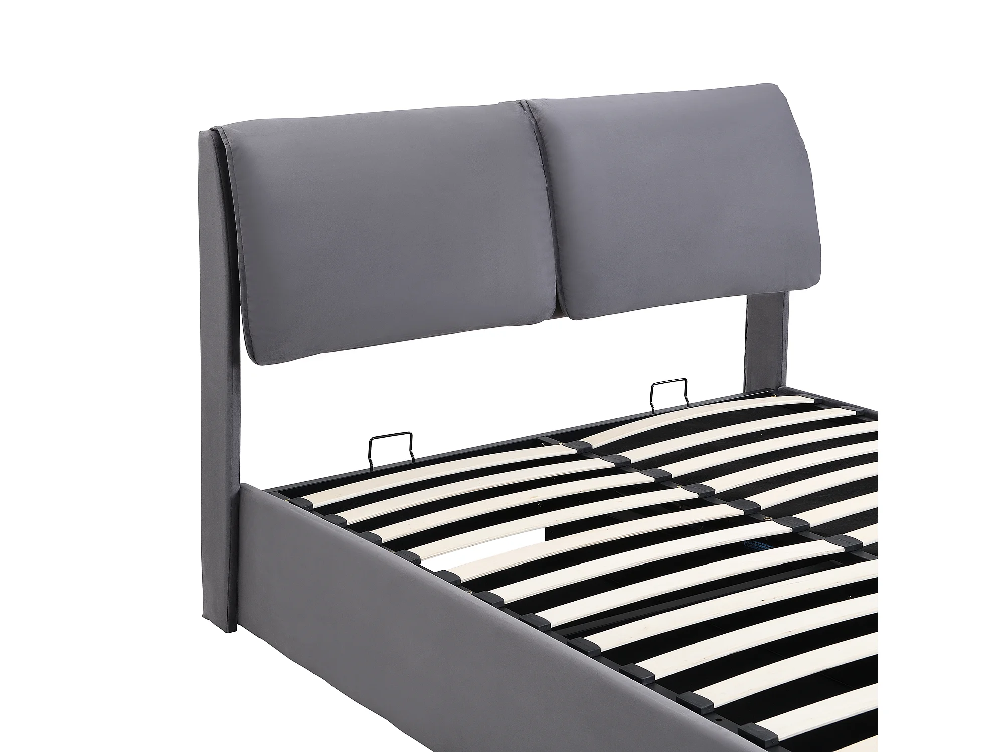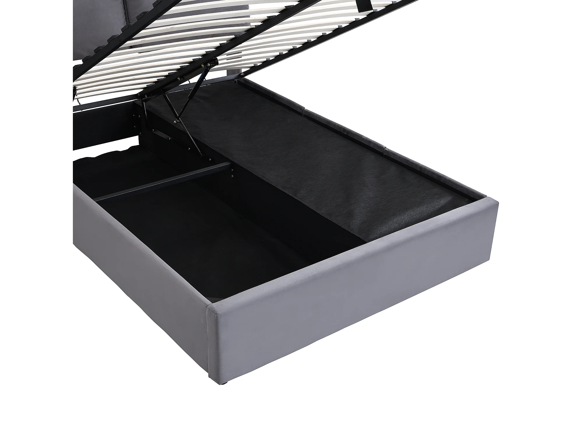Lit coffre 140x200 cm avec sommier - tête de lit réglable en hauteur - métal + bois - velours gris (sans matelas)