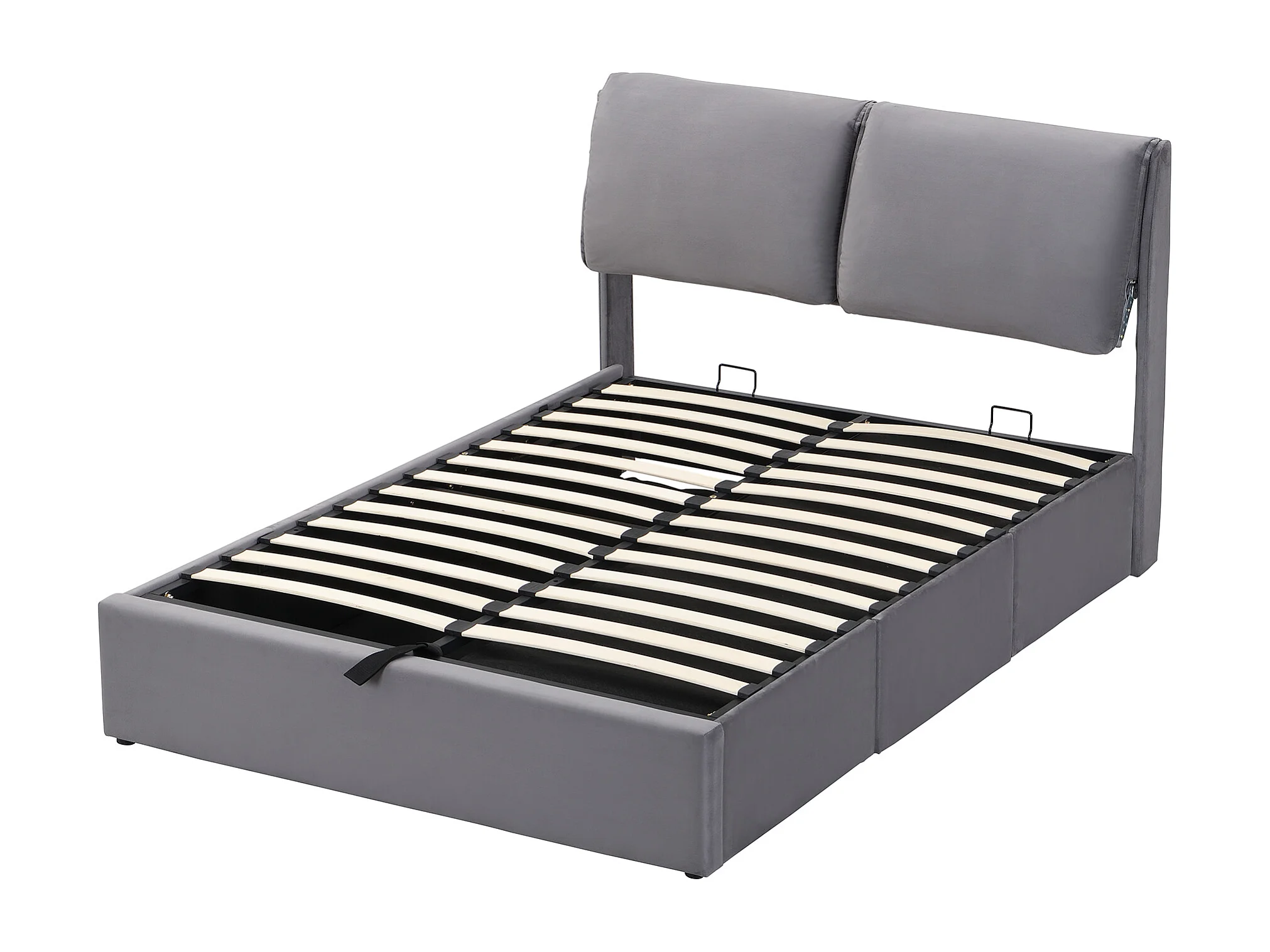 Lit coffre 140x200cm avec sommier - LED et USB-C - cadre de lit - velours gris (sans matelas)