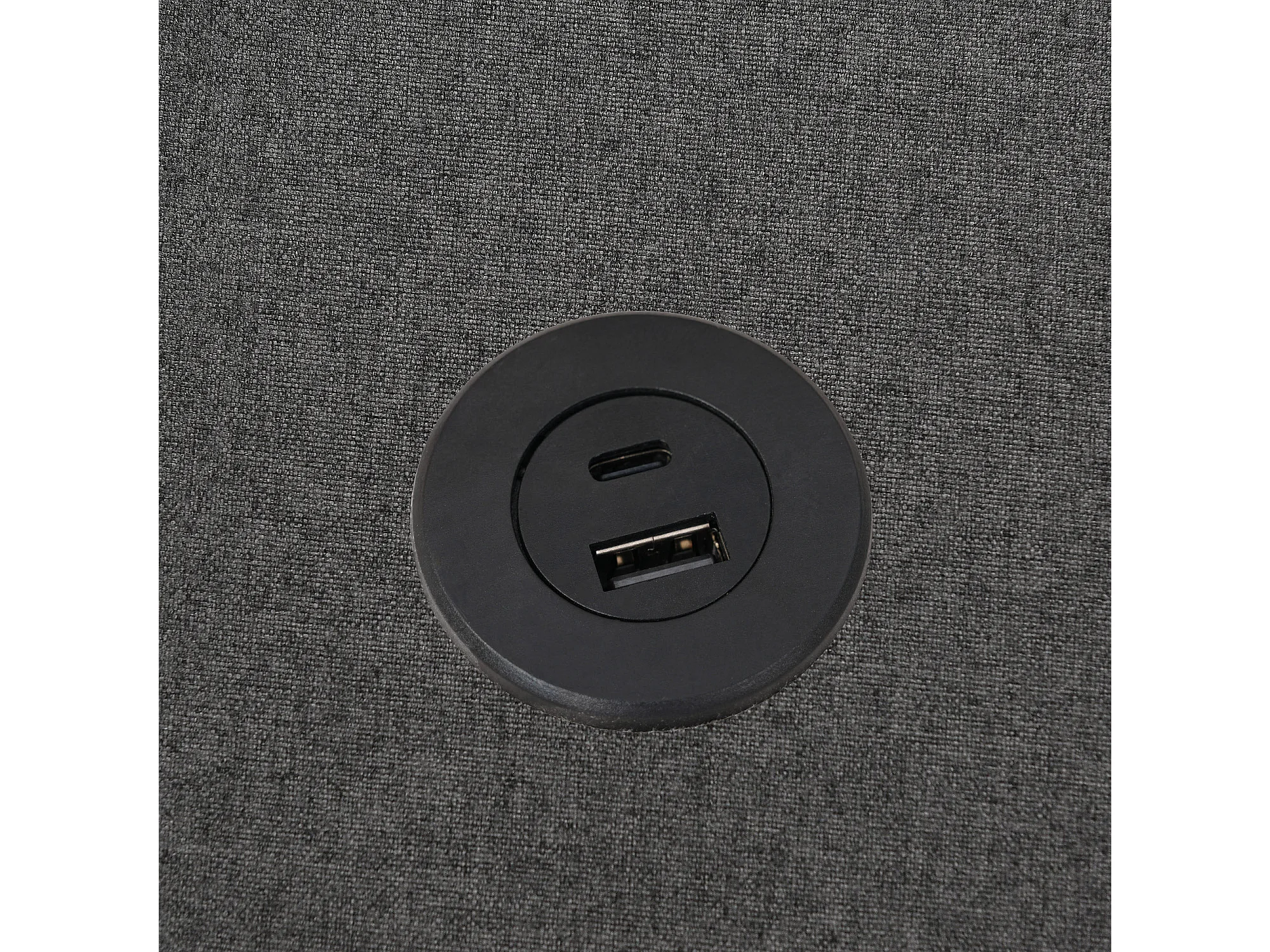 Lit coffre 140x200 cm - lit double capitonné avec tête de lit fonction chargement prise USB C - lin - gris - sans matelas