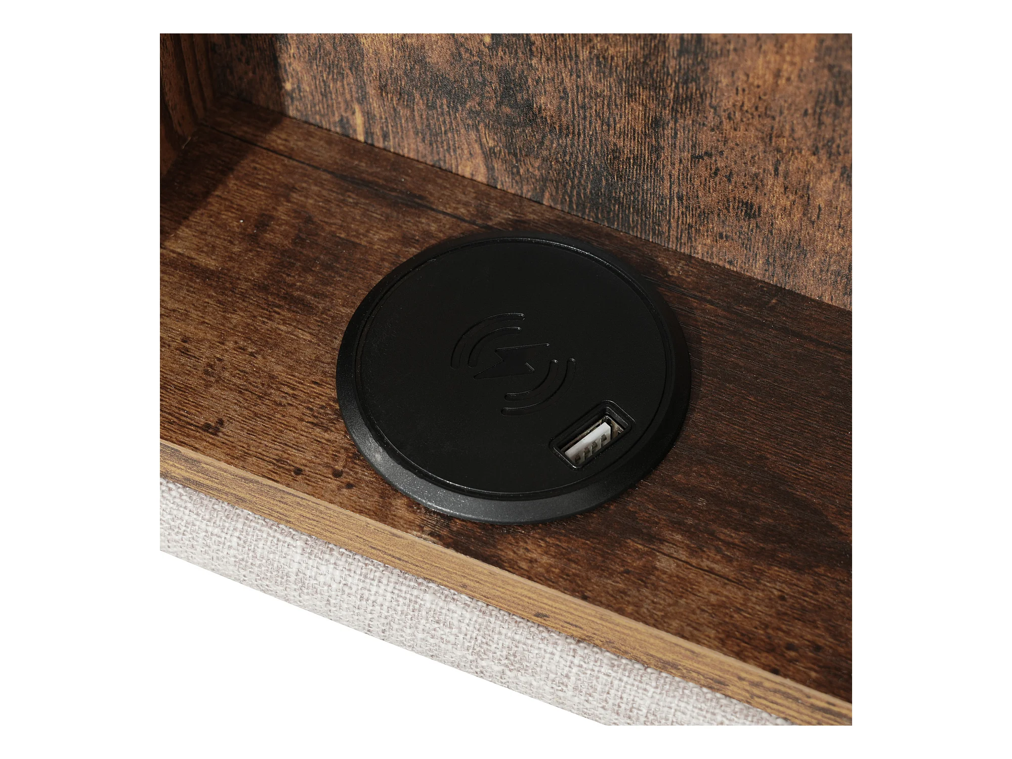 Lit coffre 140x200 cm - lit adulte avec recharge sans fil USB C - lin - coloris naturel