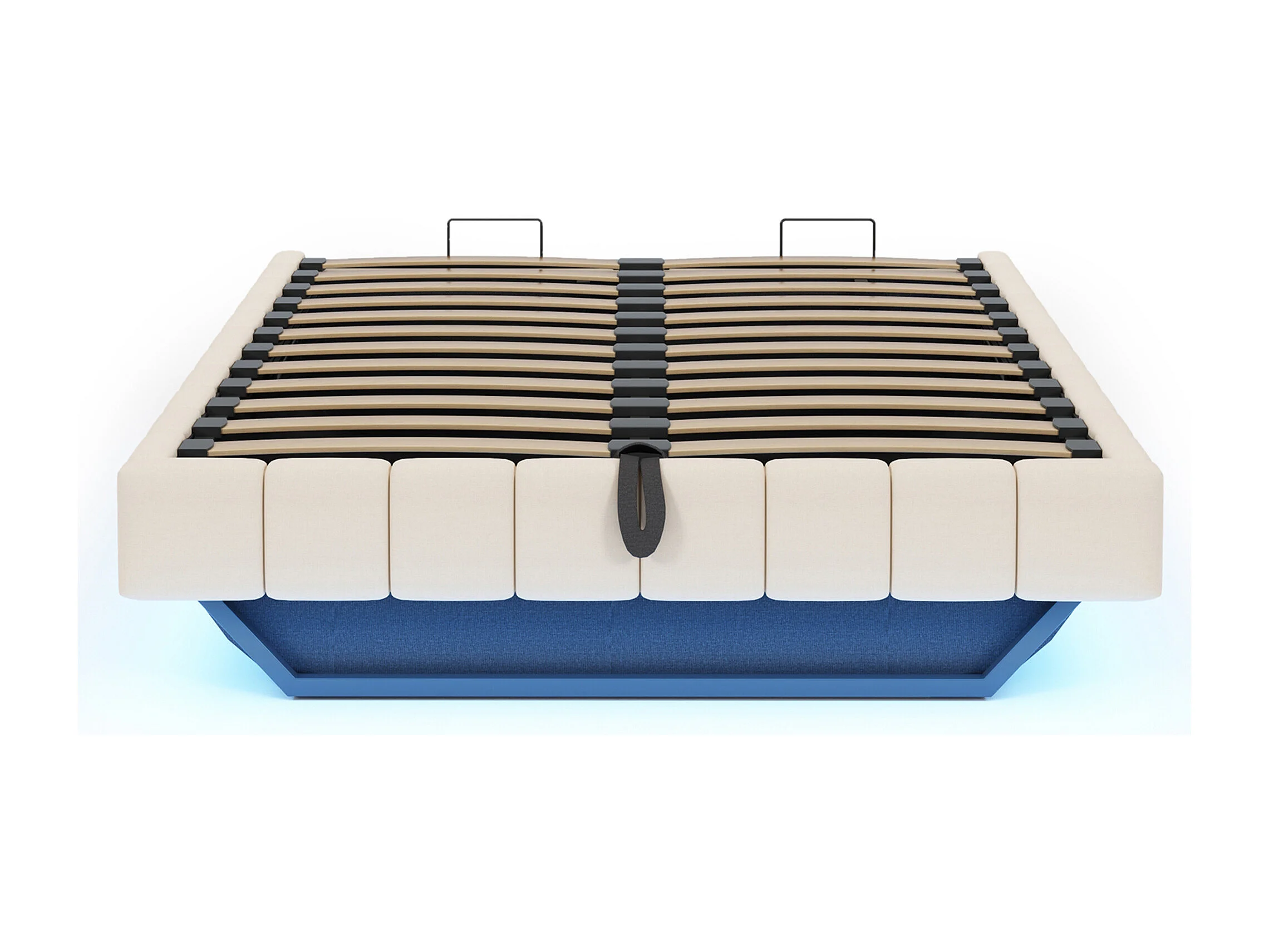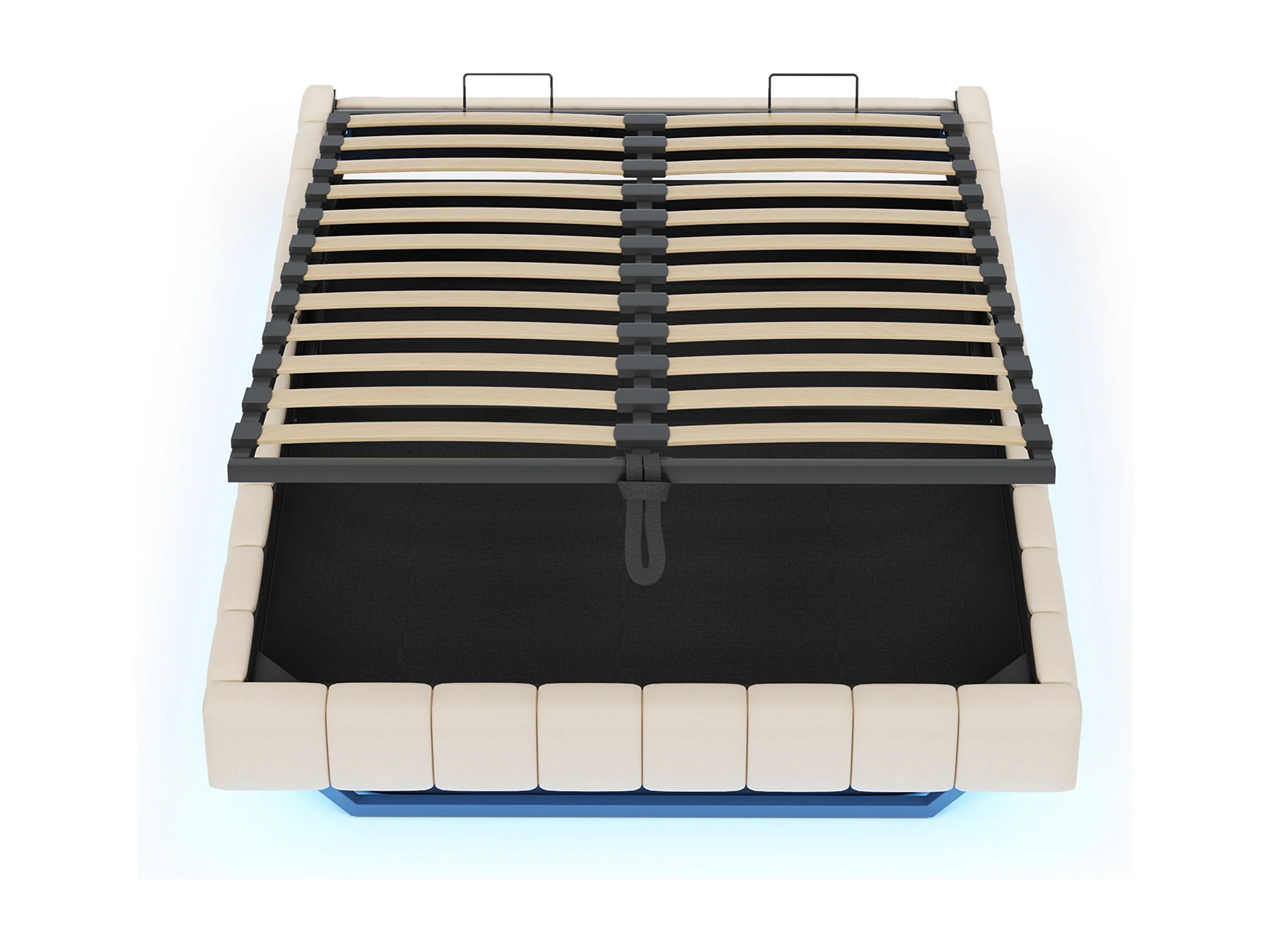 Lit coffre adulte 160x200 cm avec éclairage LED réglable, beige lin - sans matelas (sans tête de lit)
