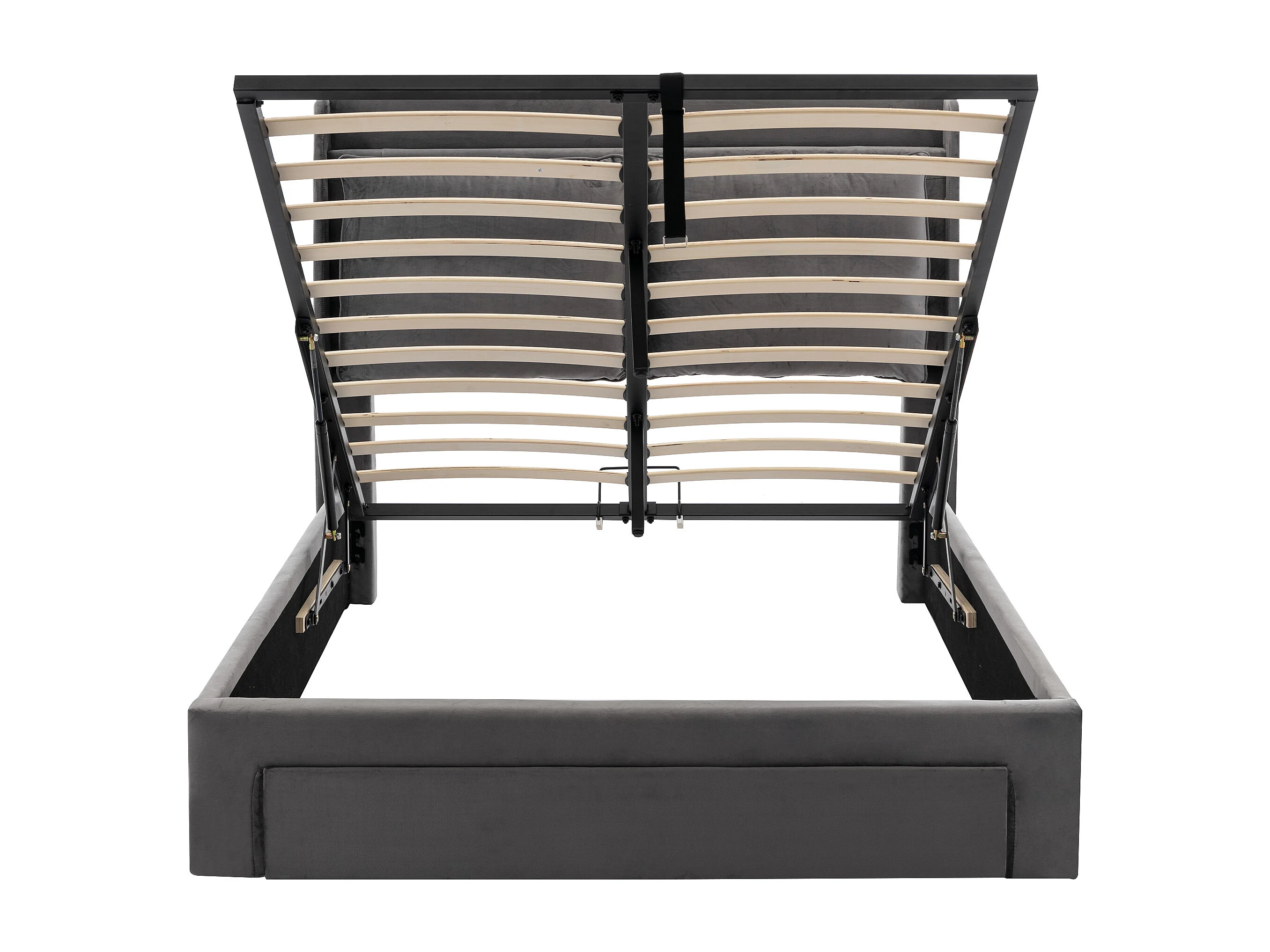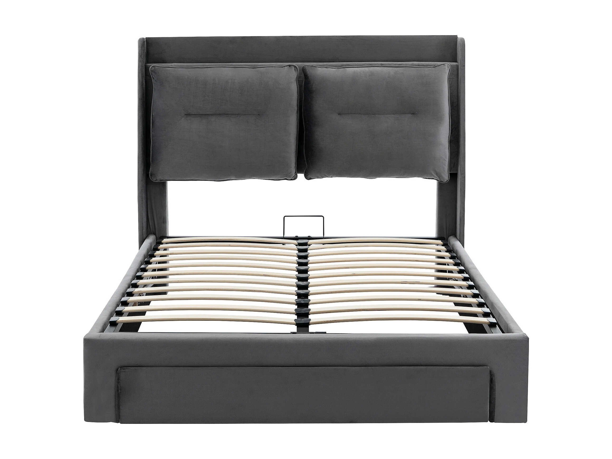 Lit coffre 160x200 cm avec sommier - tête de lit capitonnée avec tiroirs 2 en 1 et LED - velours gris (sans matelas)