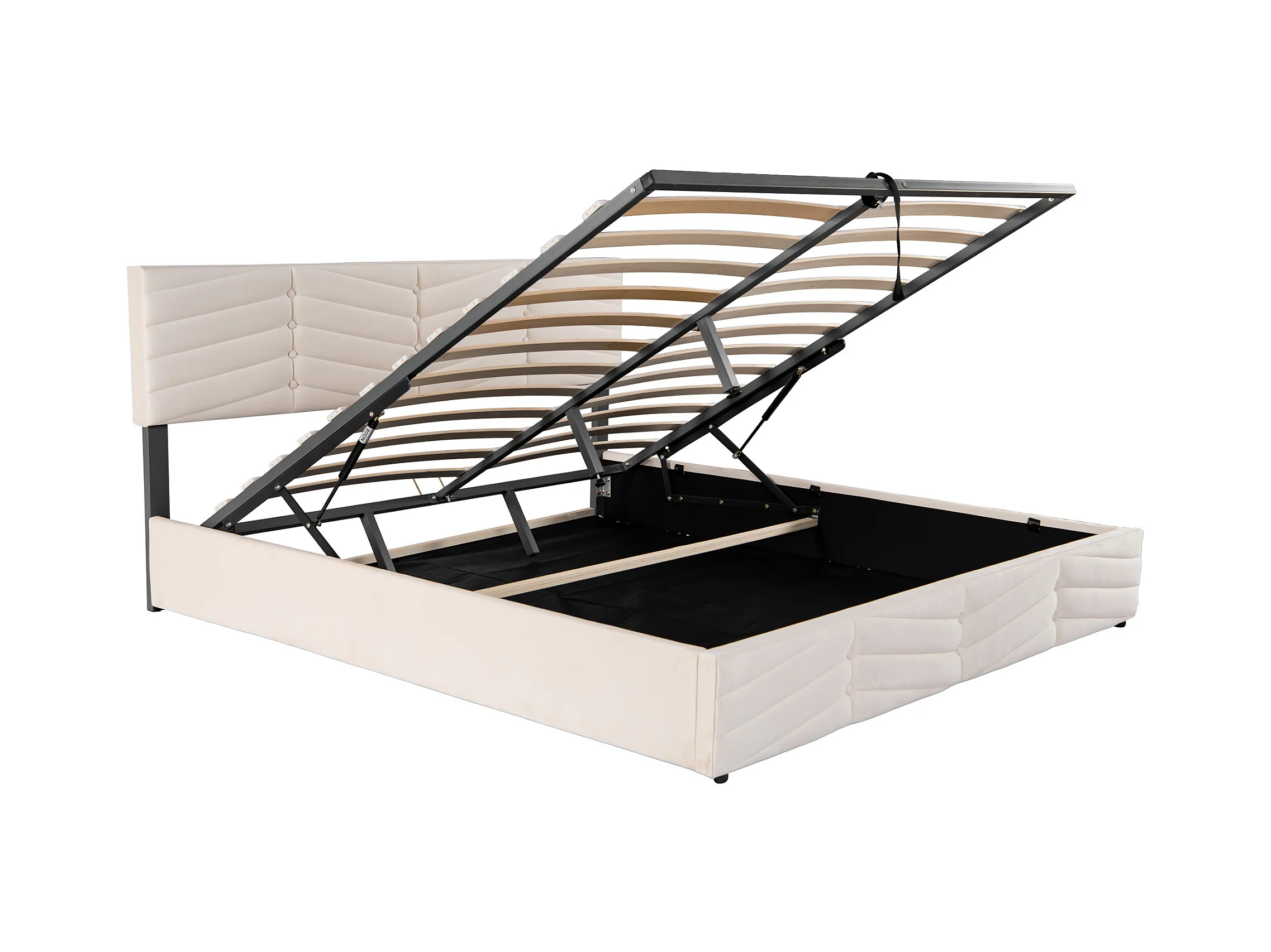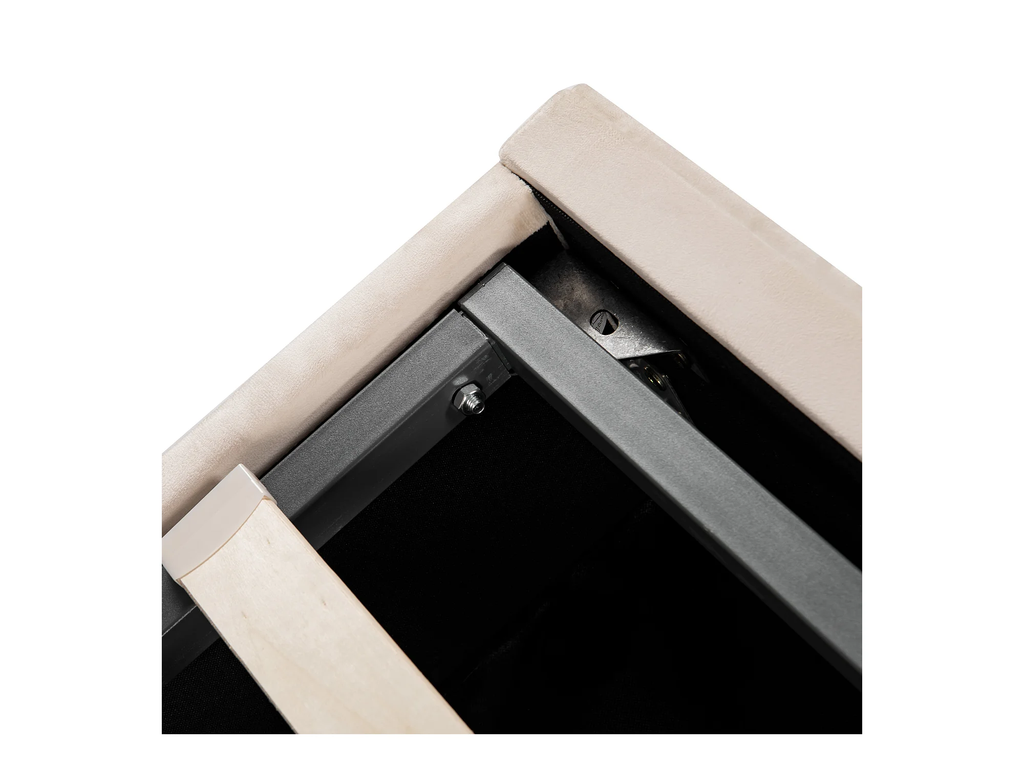 Lit coffre 160x200 cm avec sommier - tête de lit réglable en hauteur - métal + bois - velours beige (sans matelas)