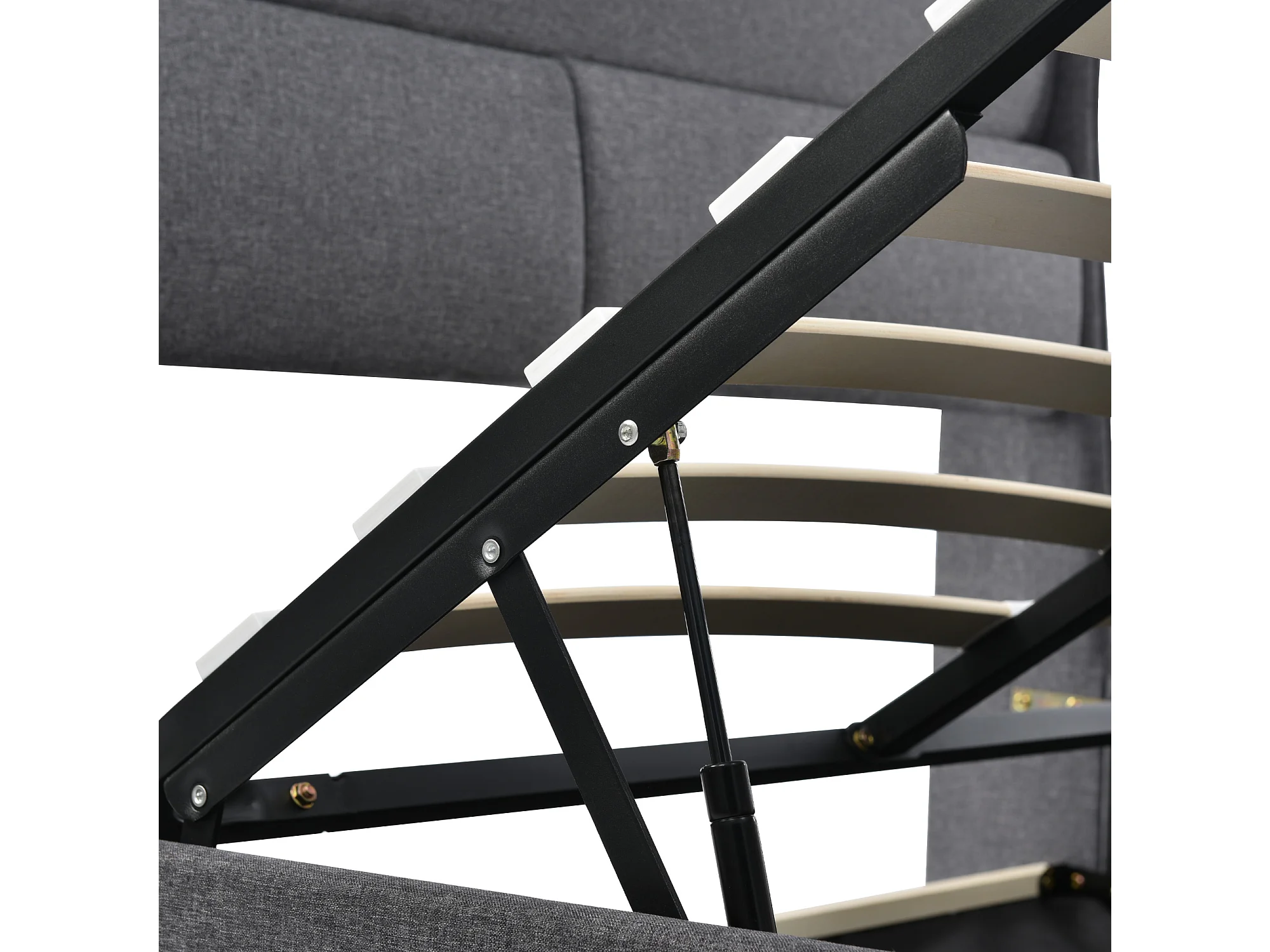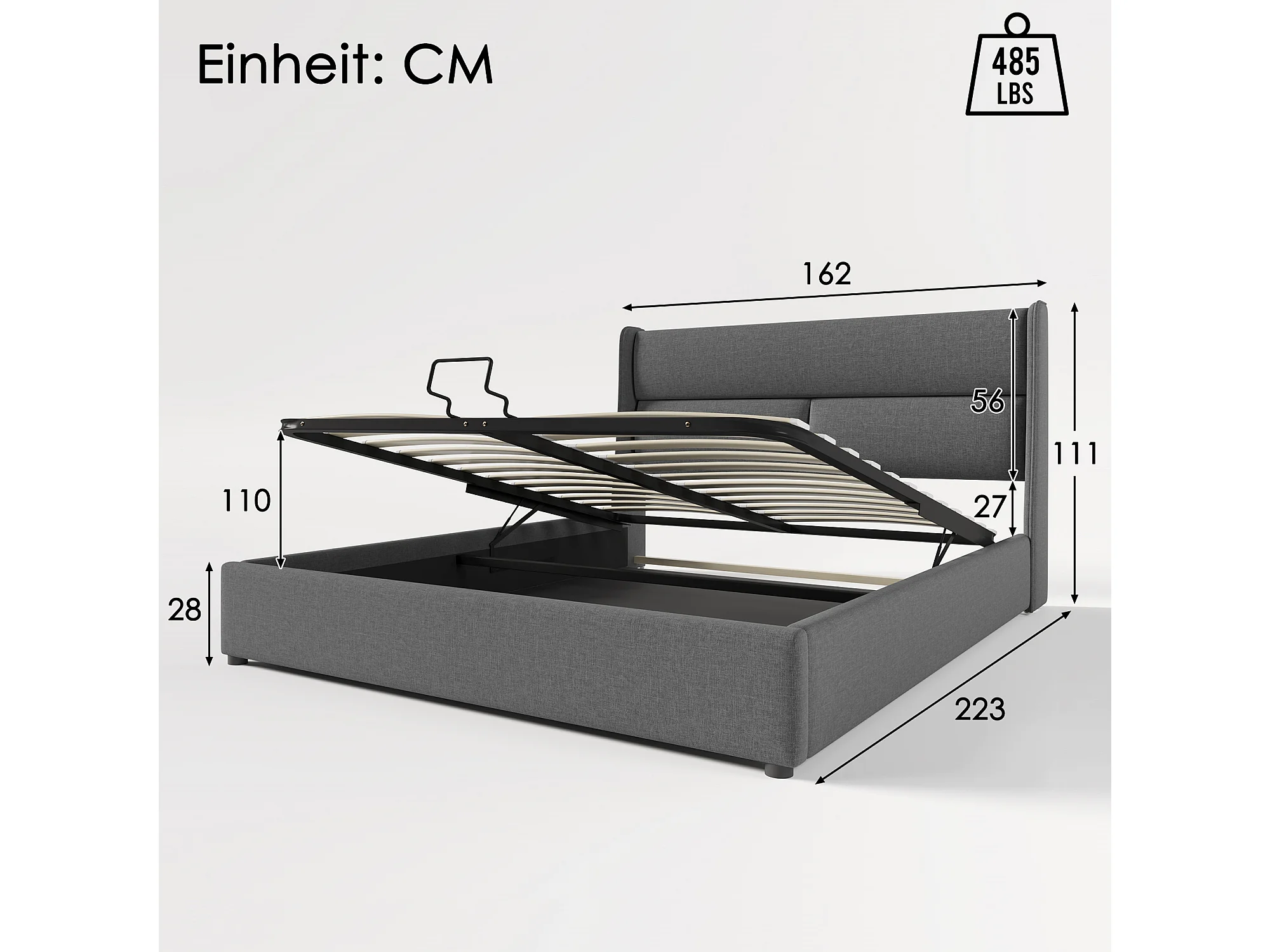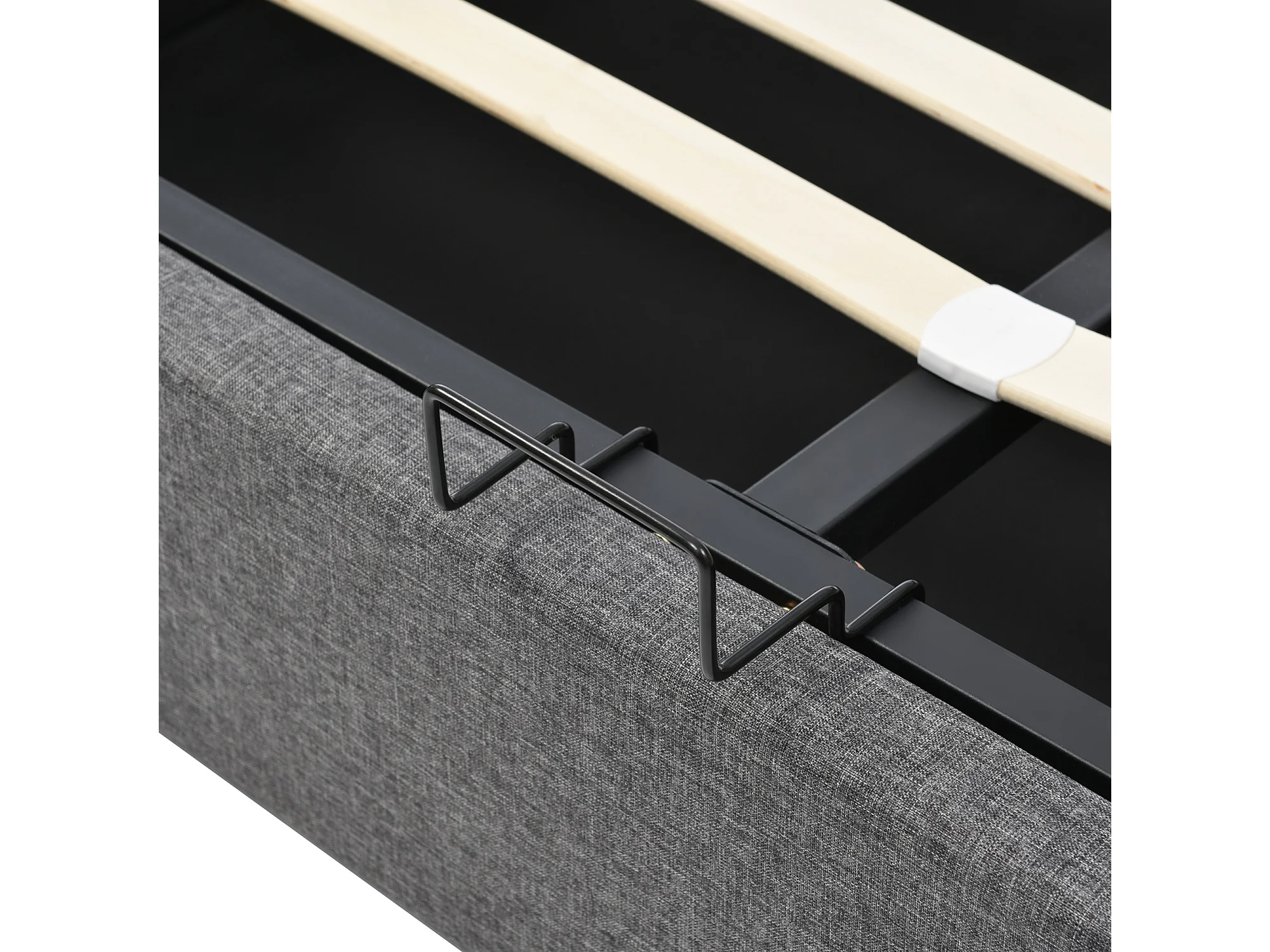 Lit coffre 160x200 cm avec sommier - tête de lit capitonnée - cadre de lit en métal - lin gris (sans matelas)