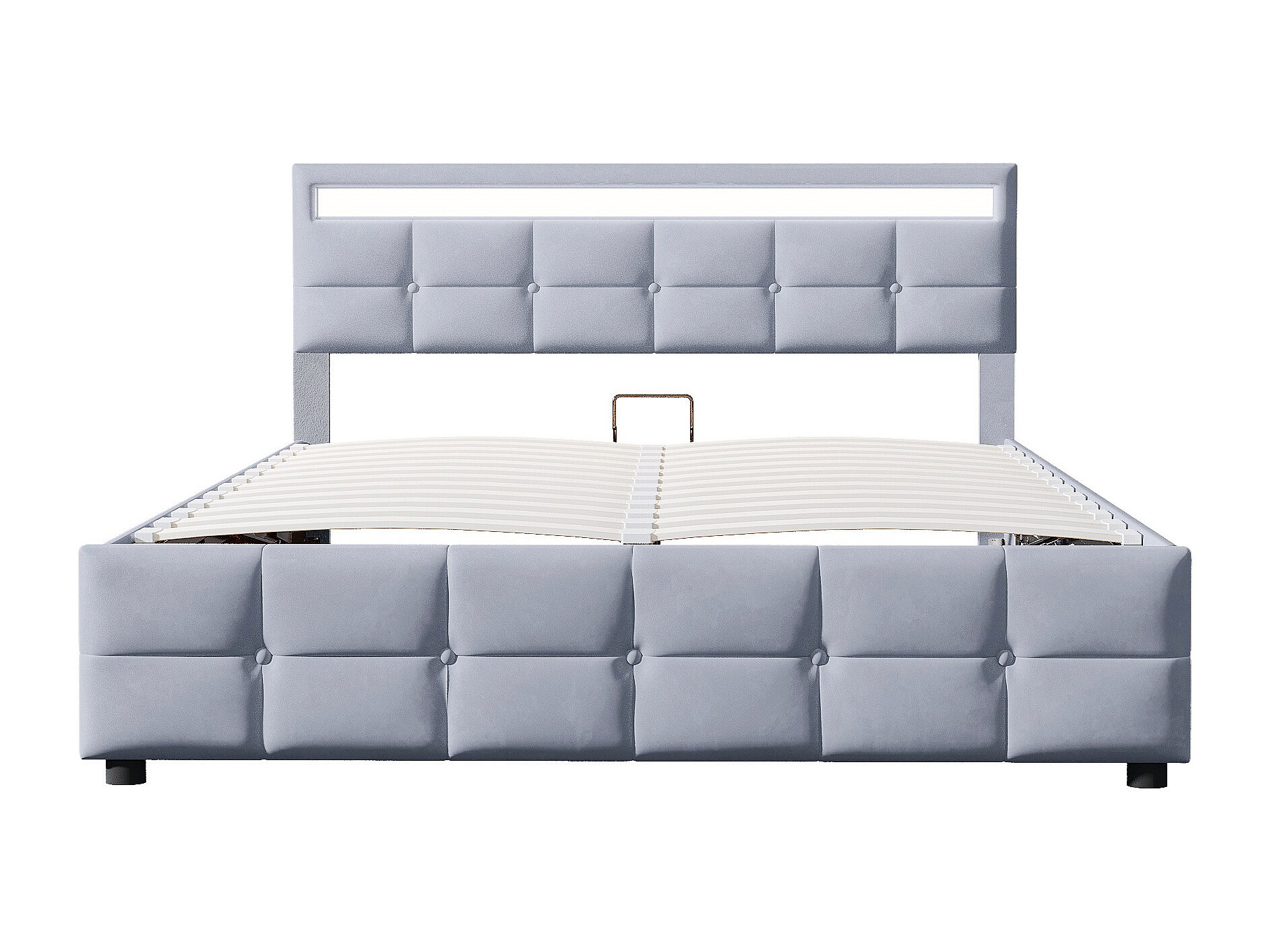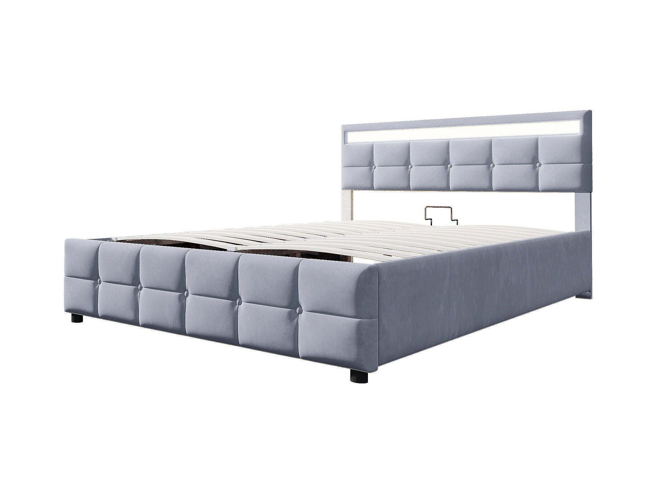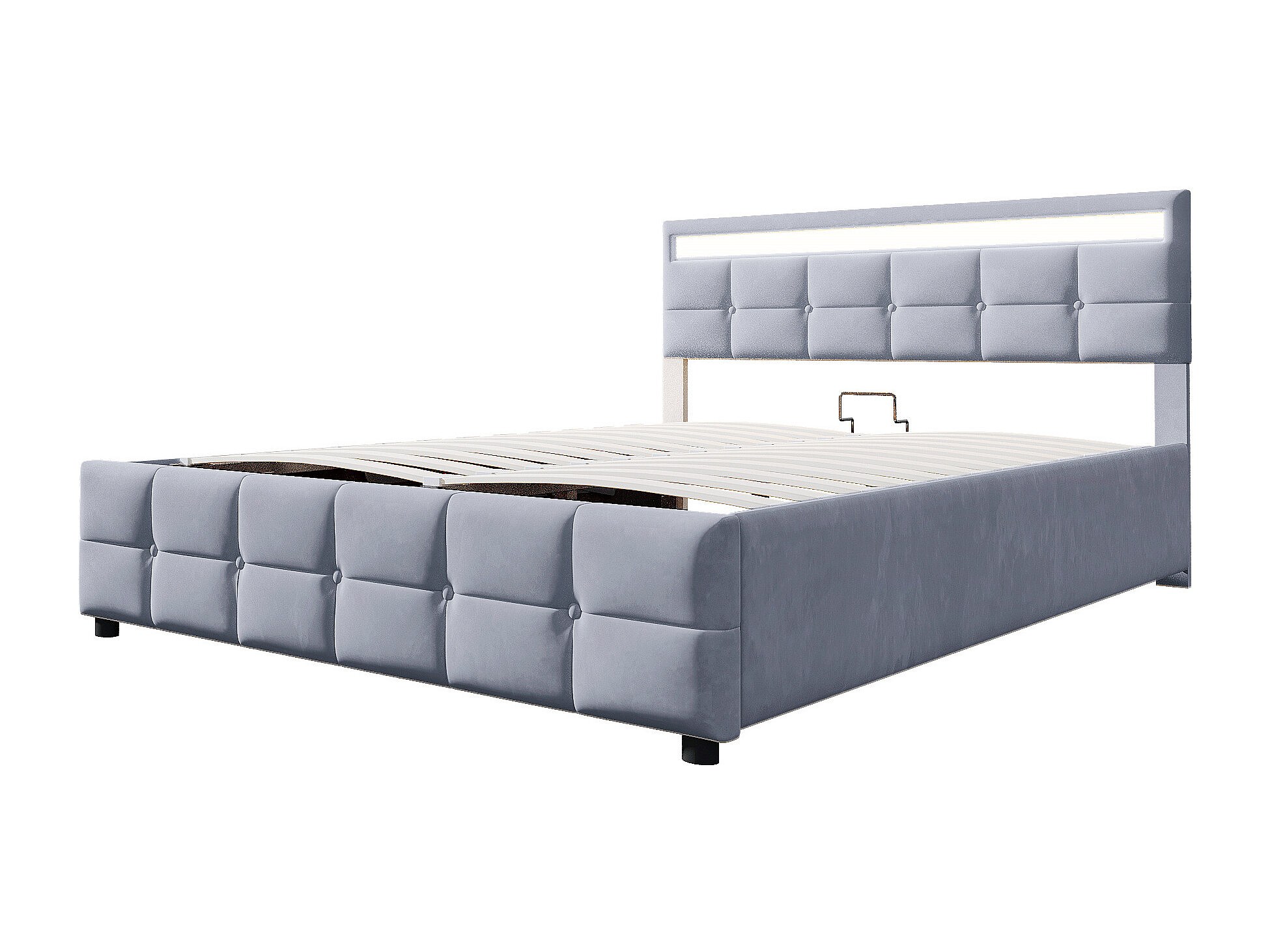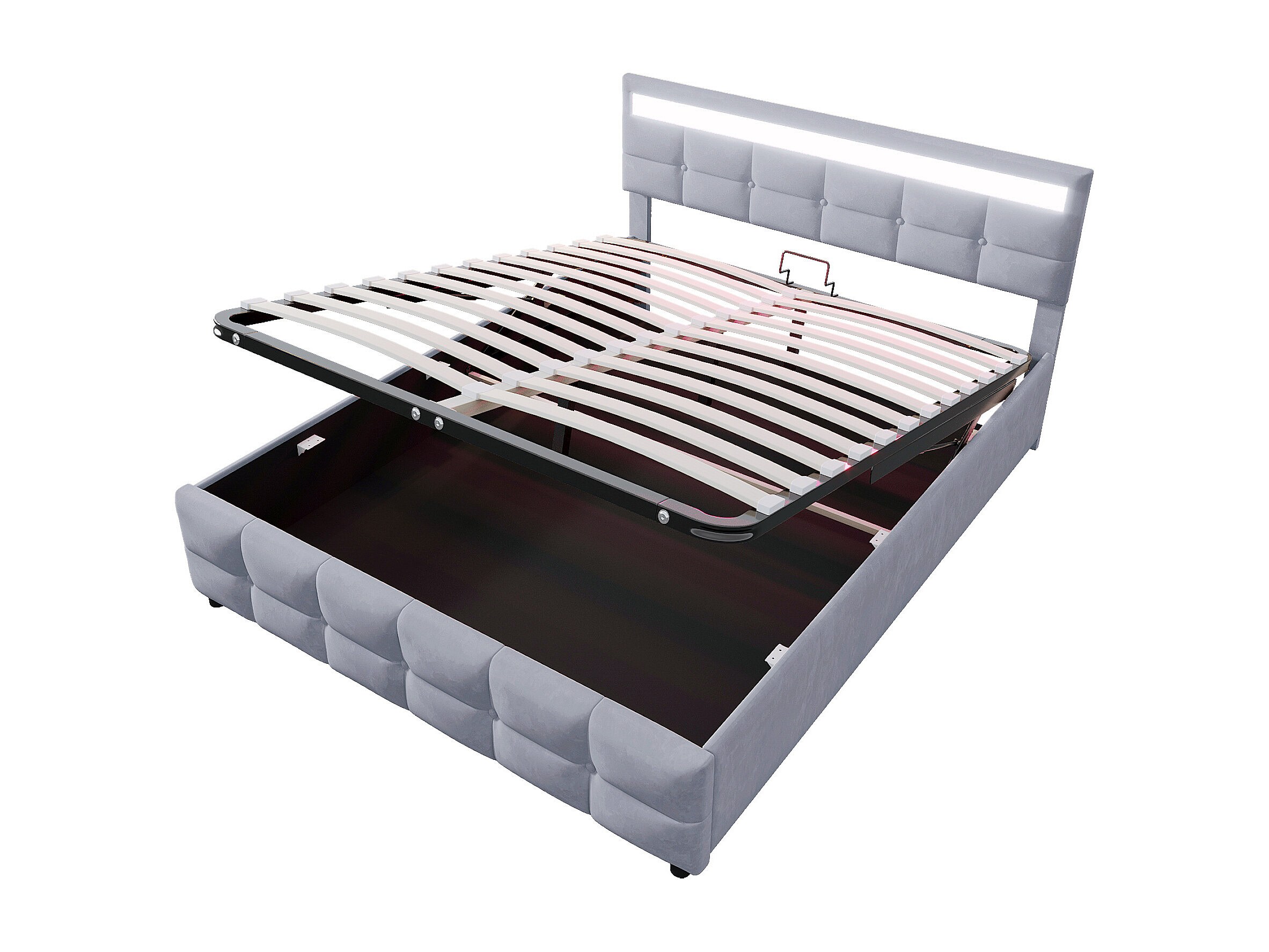 Lit coffre adulte 180x200 cm avec éclairage LED, sommier à lattes - velours gris - sans matelas