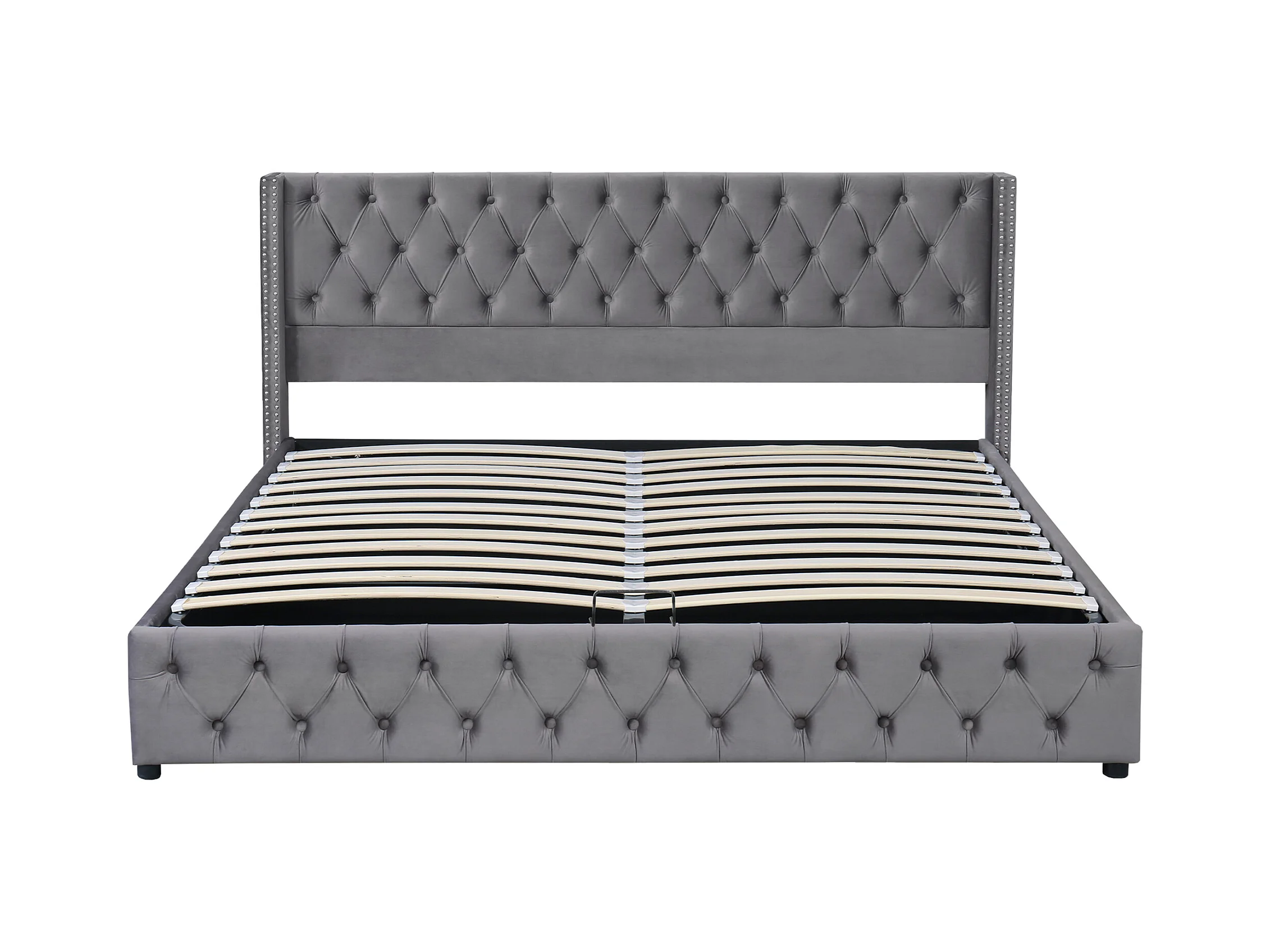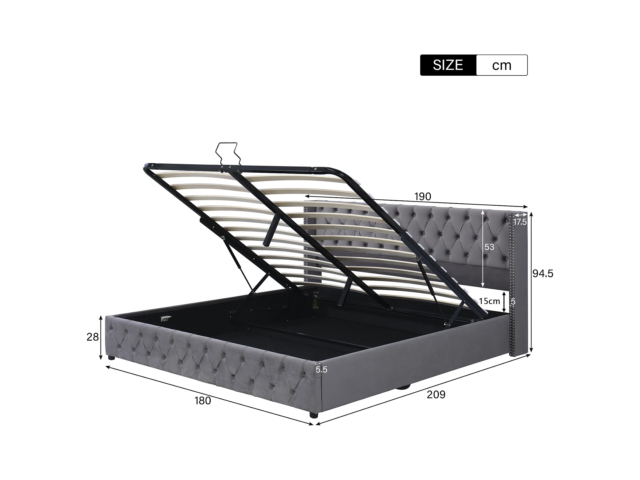 Lit coffre 180x200 cm avec sommier - tête de lit capitonnée - velours - gris (sans matelas)