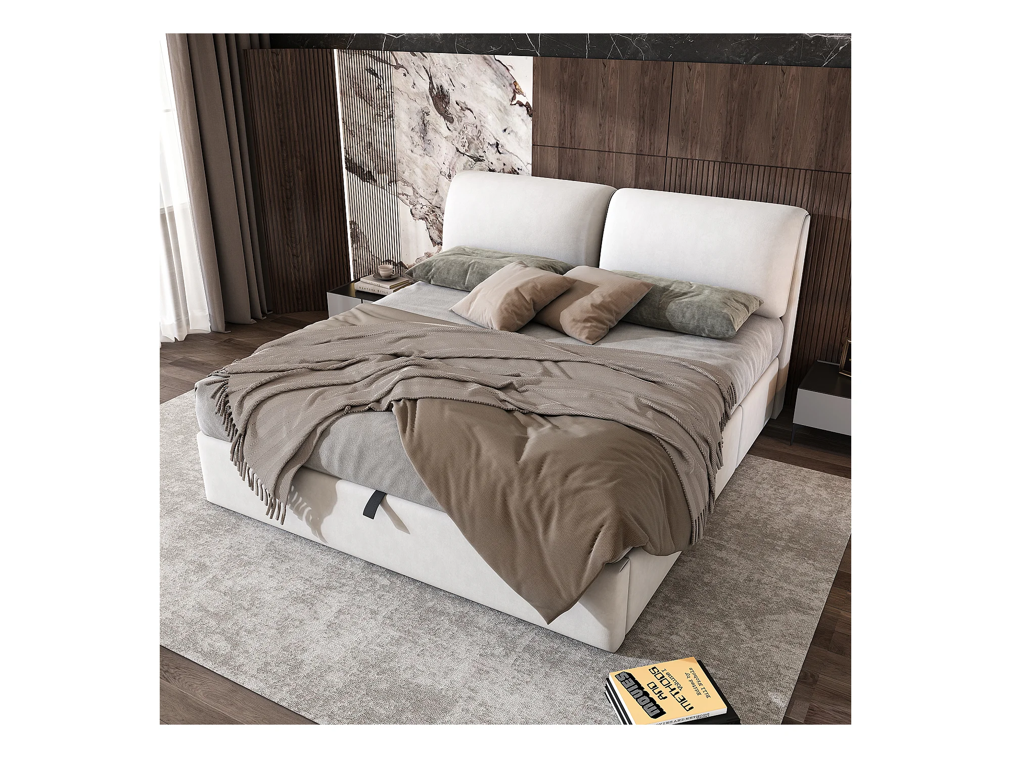 Lit coffre plateforme – extra grand couchage 180x200 cm - tissu velours beige - sommier inclus - LANCE