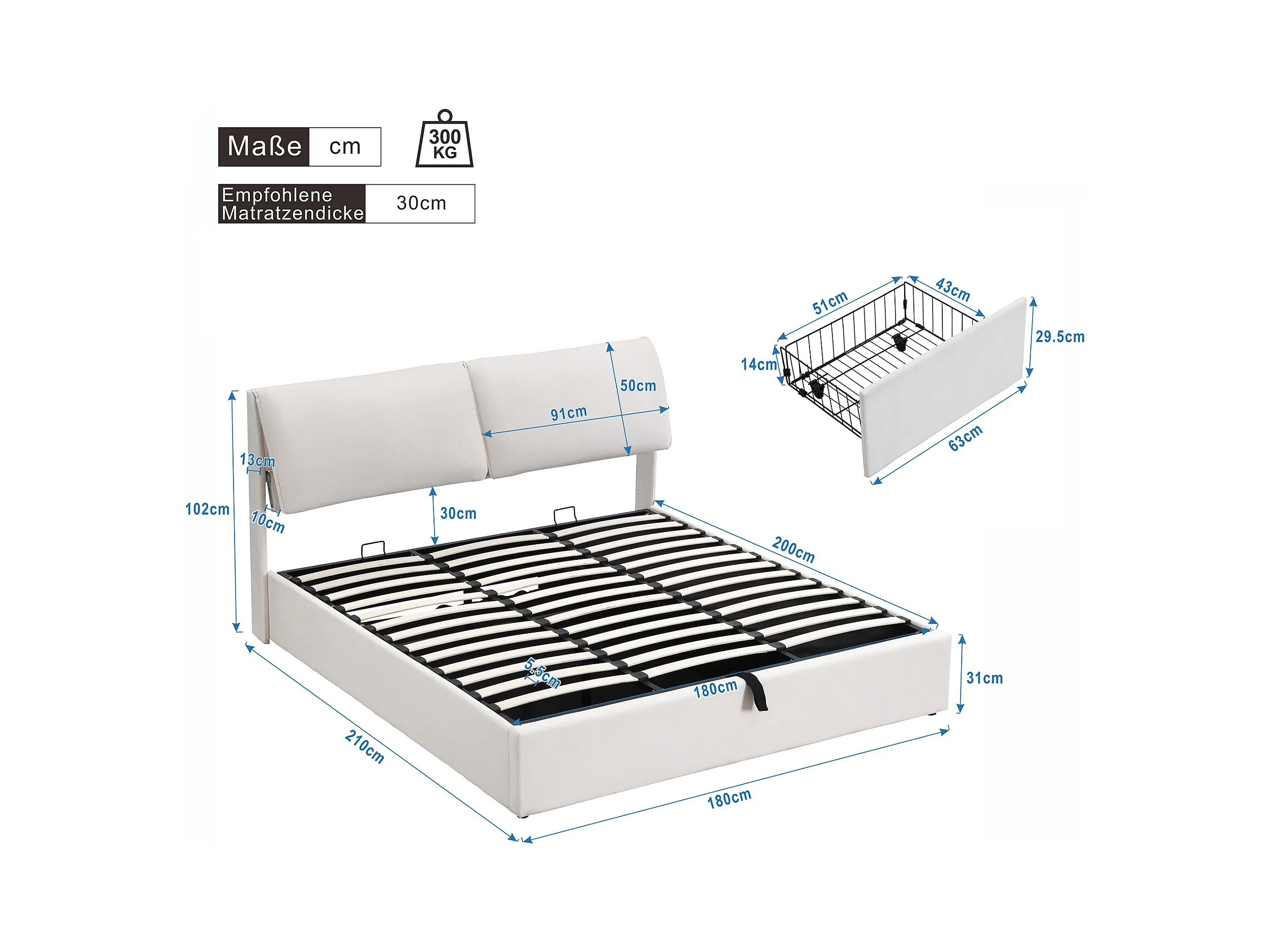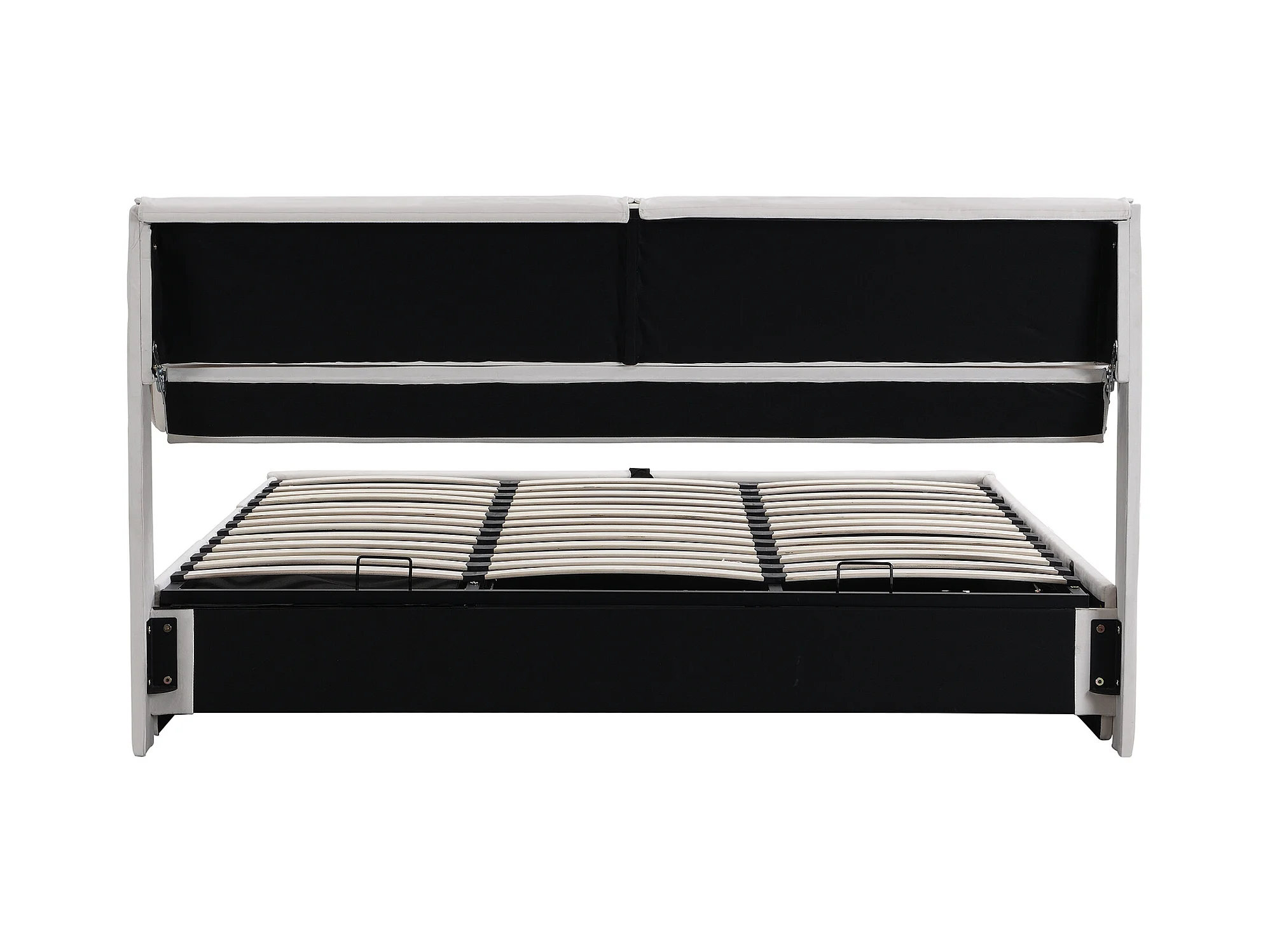 Lit coffre 180x200 cm avec sommier - tête de lit capitonnée - cadre de lit en métal - lin beige (sans matelas)