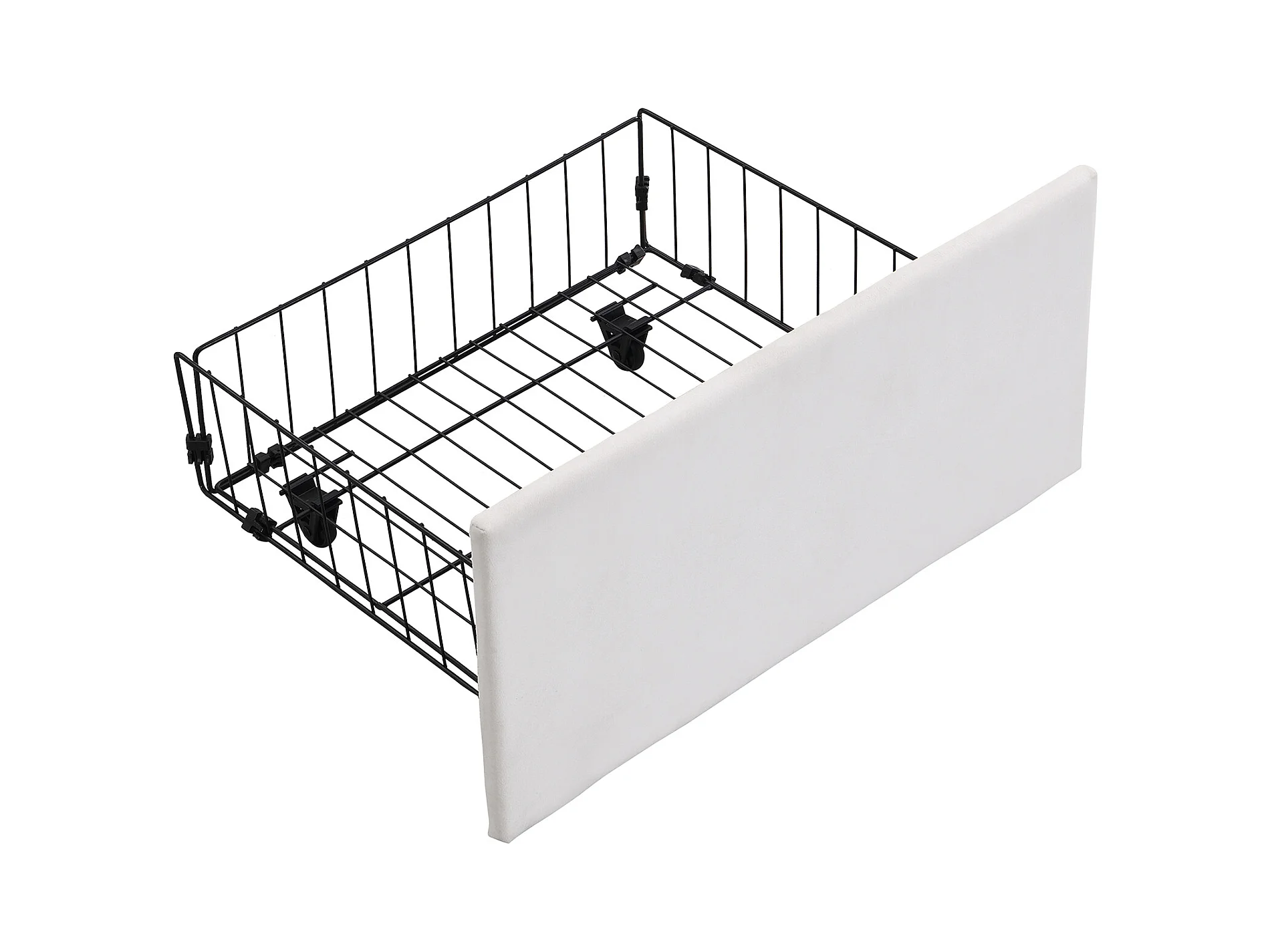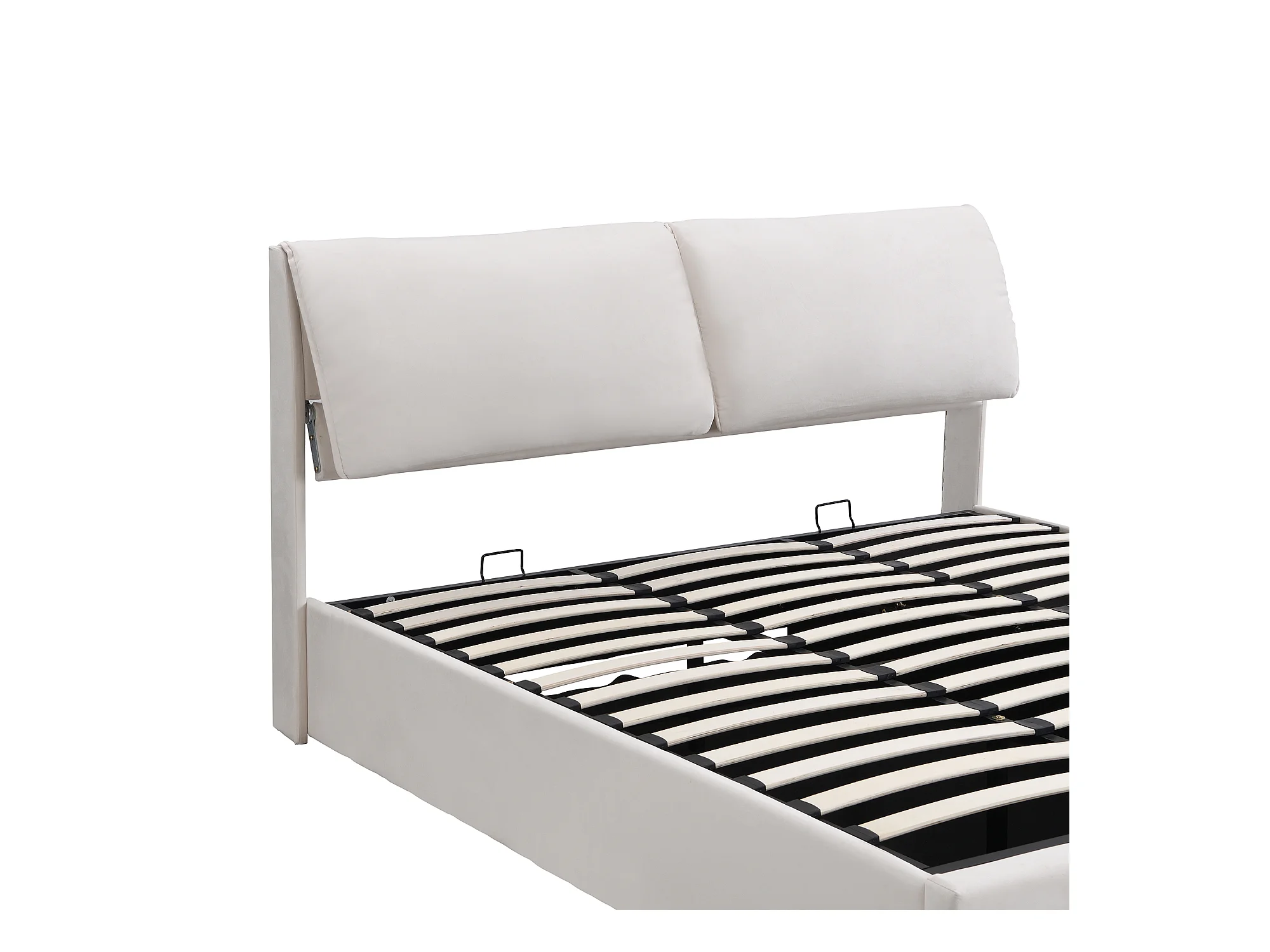 Lit coffre 180x200 cm avec sommier - tête de lit rembourré avec 3 tiroirs - velours - beige - blanc (sans matelas)