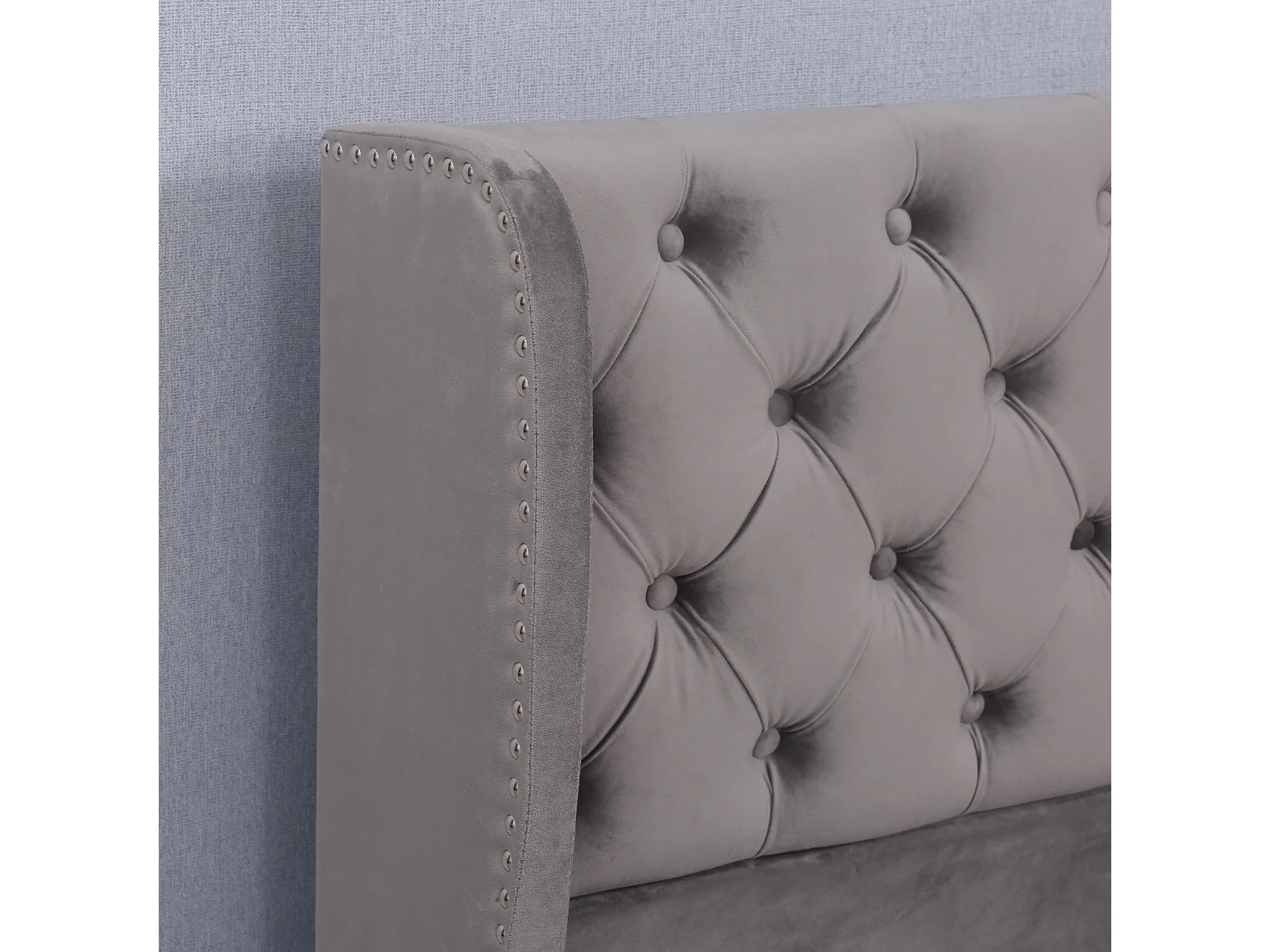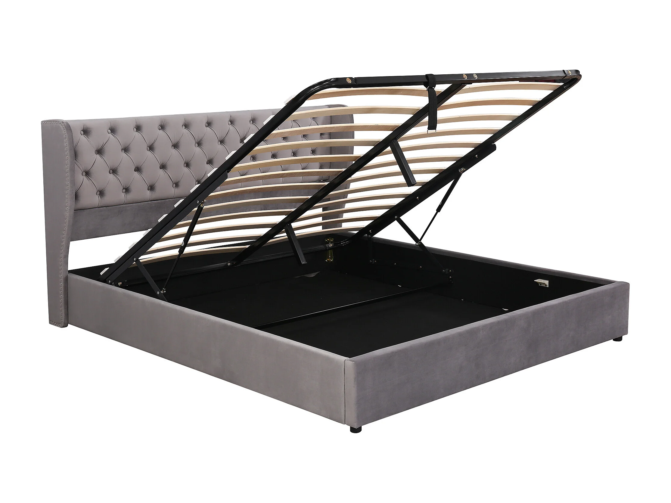 Lit coffre 180x200 cm avec sommier à lattes - tête de lit capitonnée en velours - gris (sans matelas)