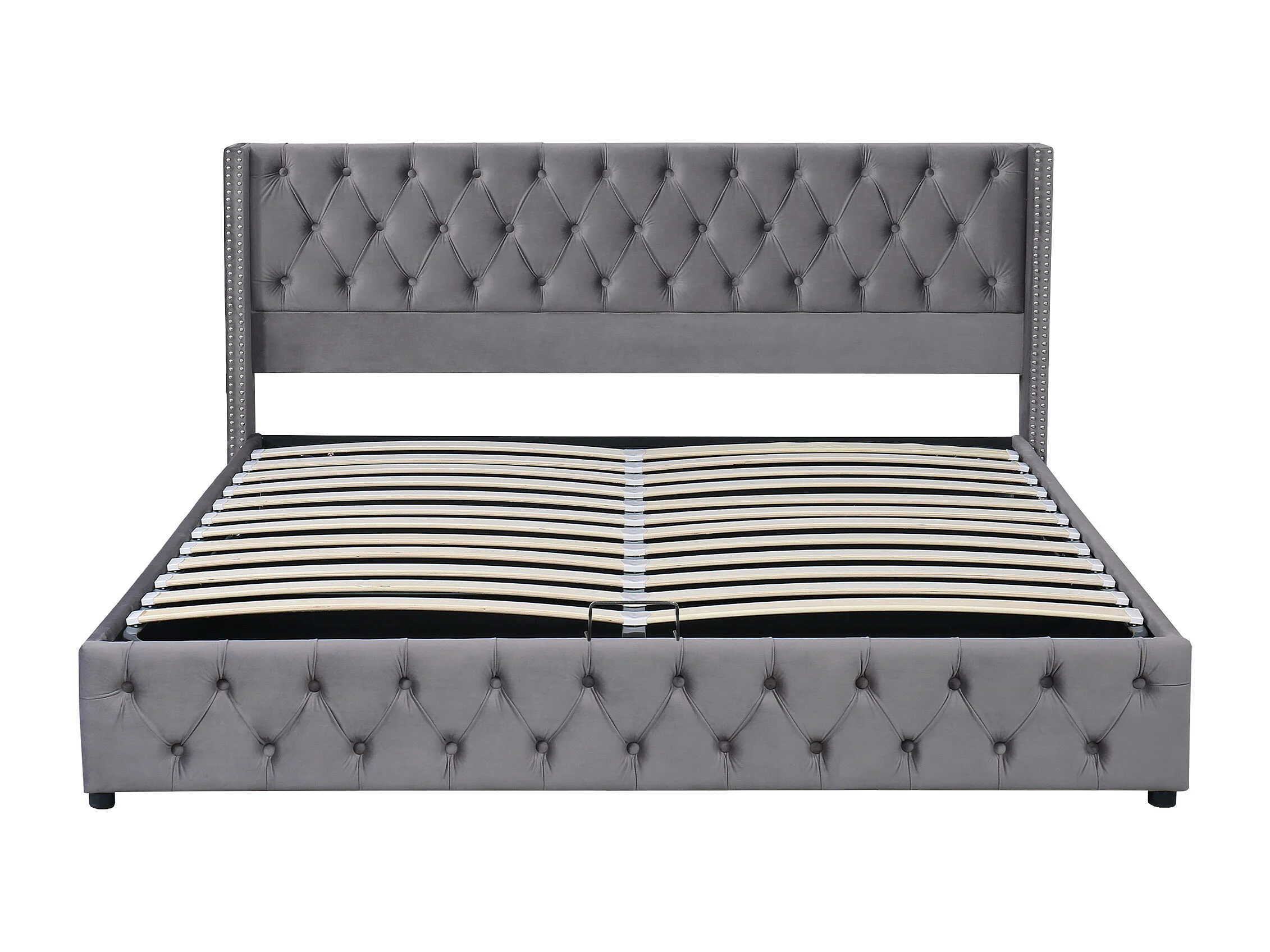 Lit coffre adulte 180x200cm avec Tête de lit Capitonné, velours gris, sans matelas