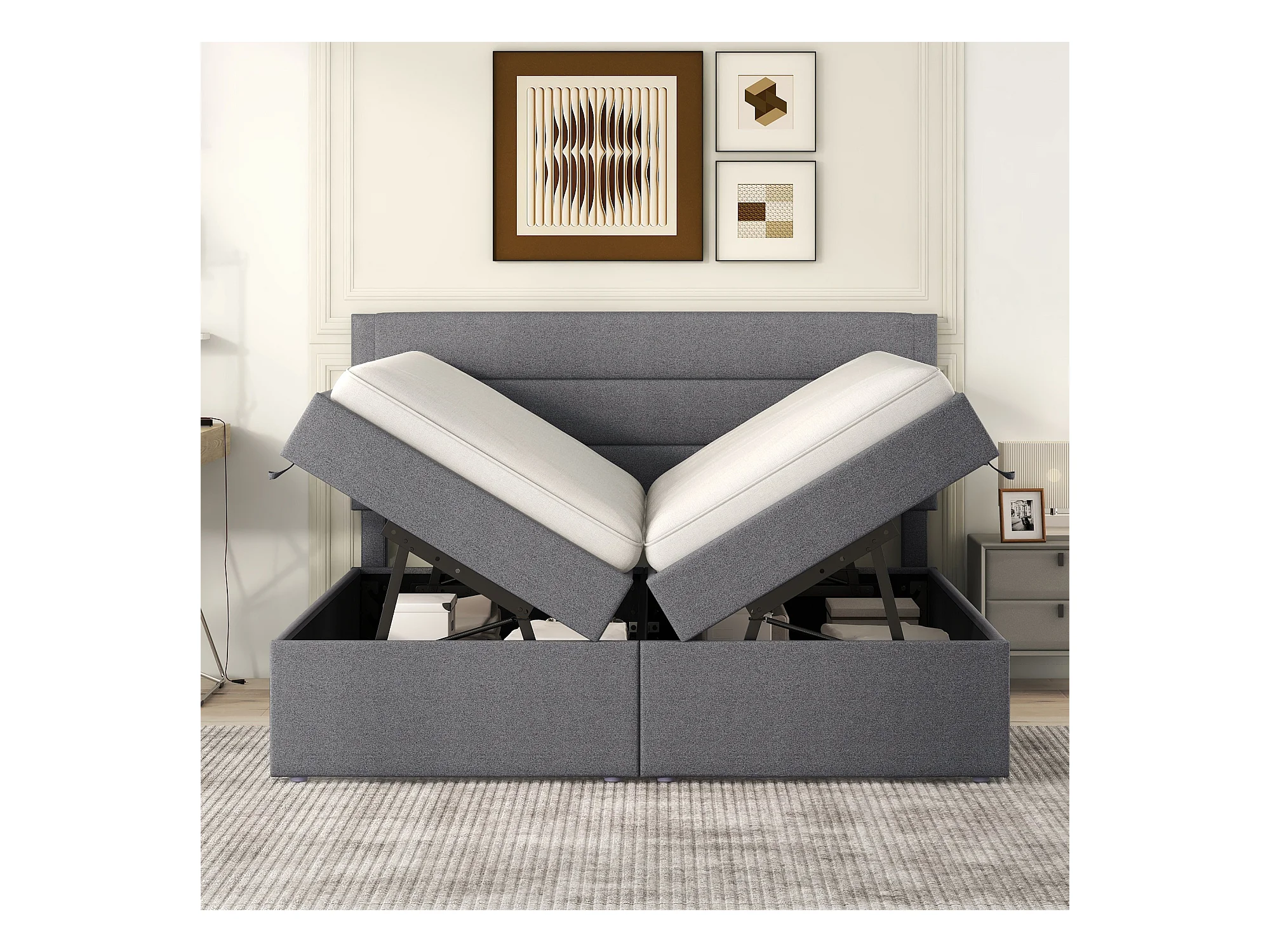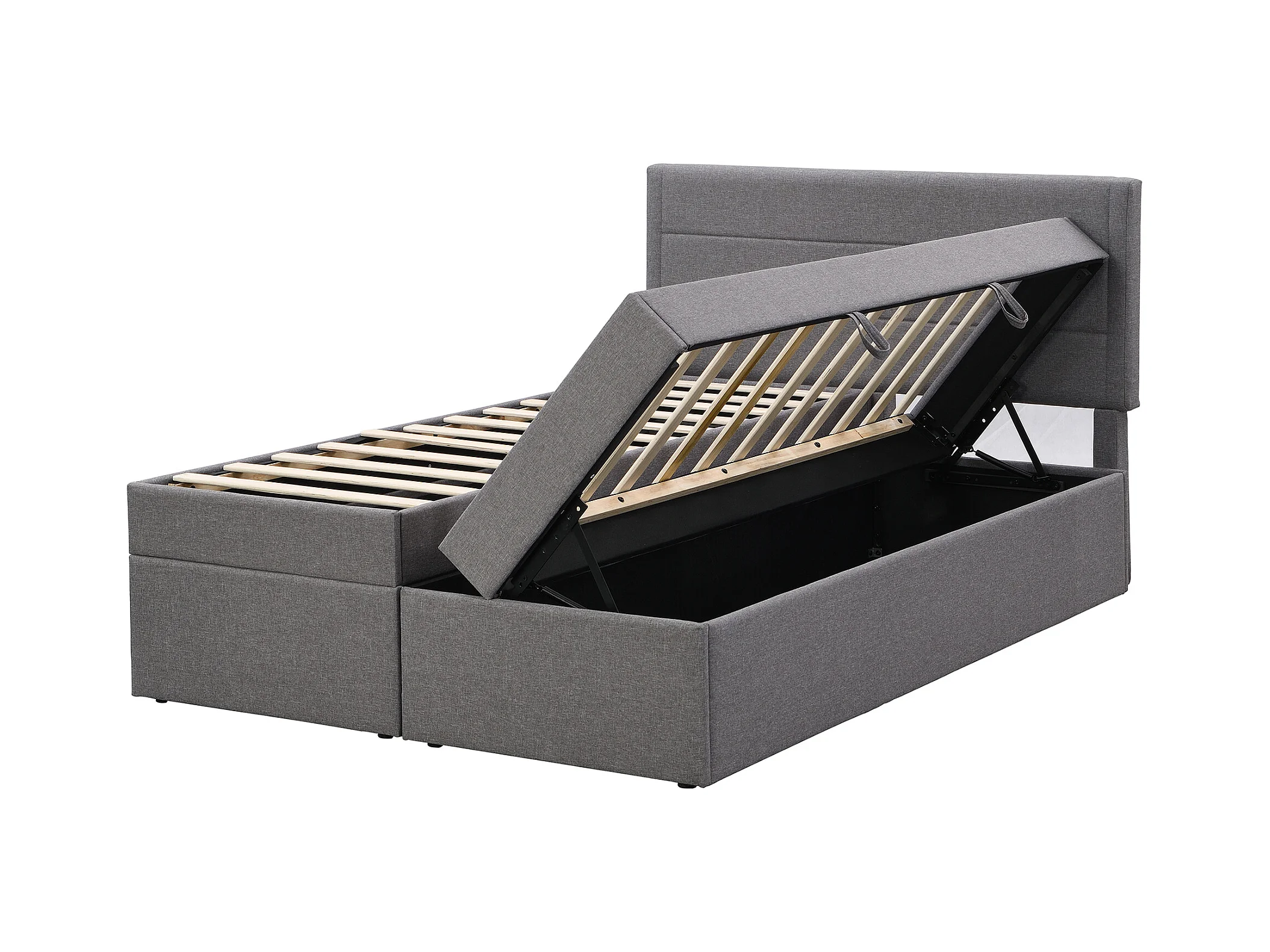 Lit coffre avec sommier à lattes - 140x200 cm - tissu en lin - Gris