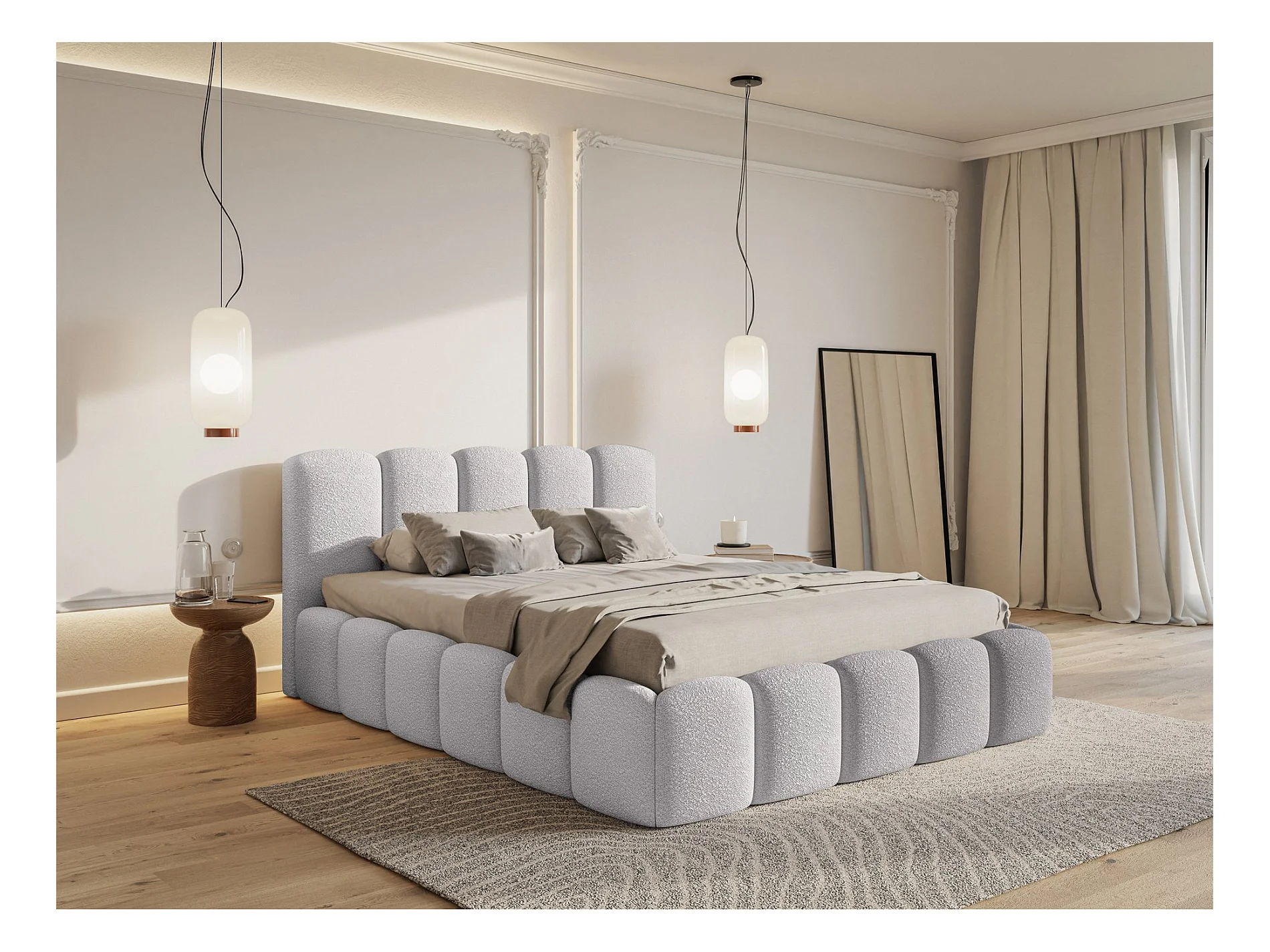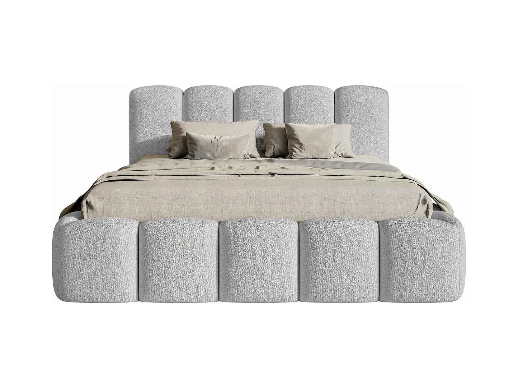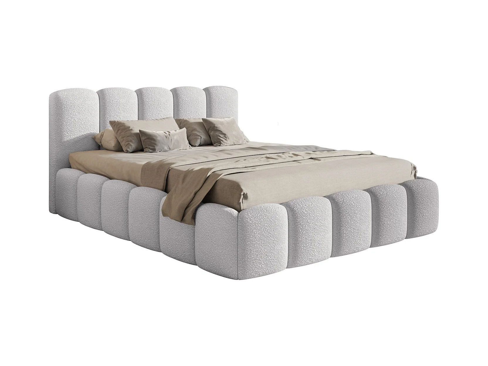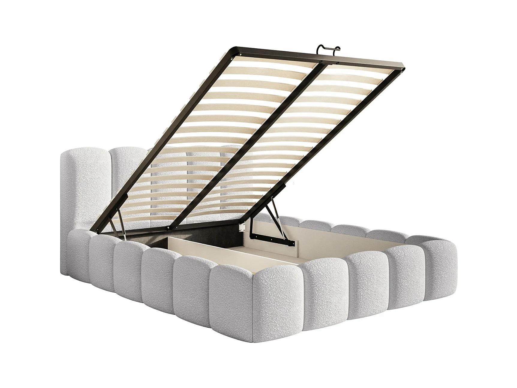 Lit coffre avec tête de lit - 140x200 cm - en bouclette gris clair - CLOUDY II