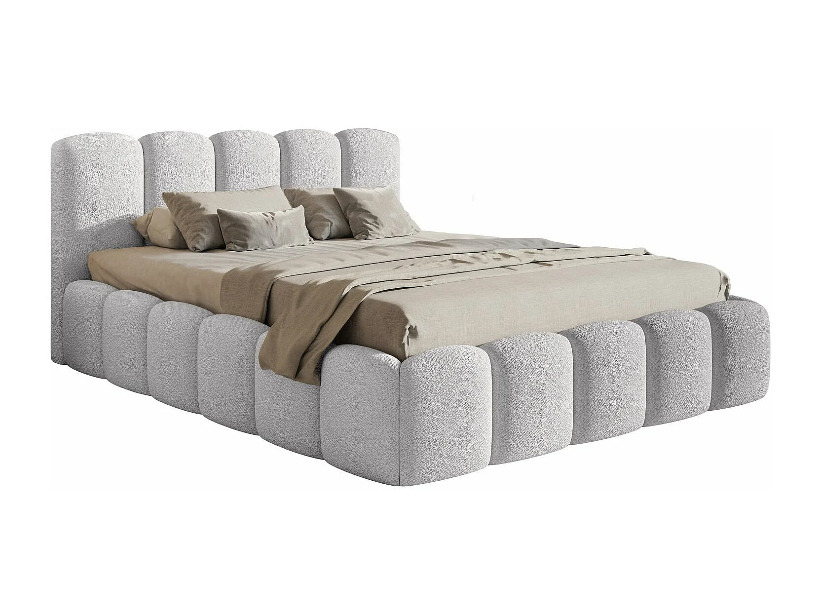 Lit coffre avec tête de lit - 160x200 cm - en bouclette gris clair - CLOUDY II