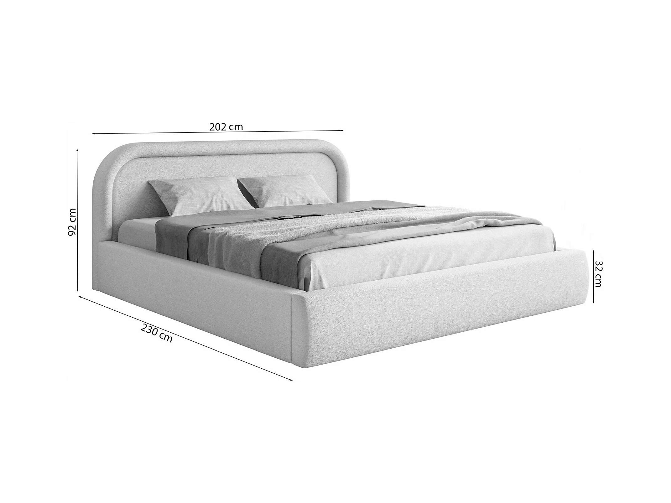 Lit coffre - 180x200 cm - en bouclette gris clair - BAURO