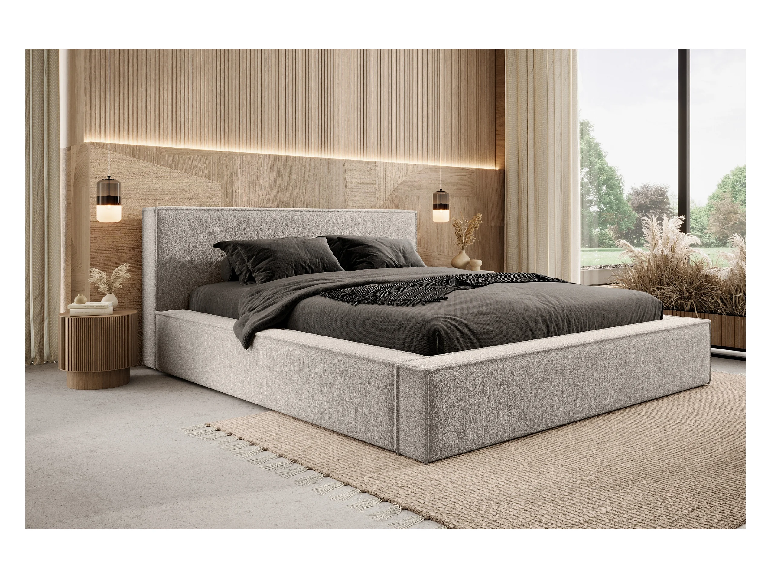 Lit coffre - 140x200 cm - en tissu bouclette beige clair - SONVIVO