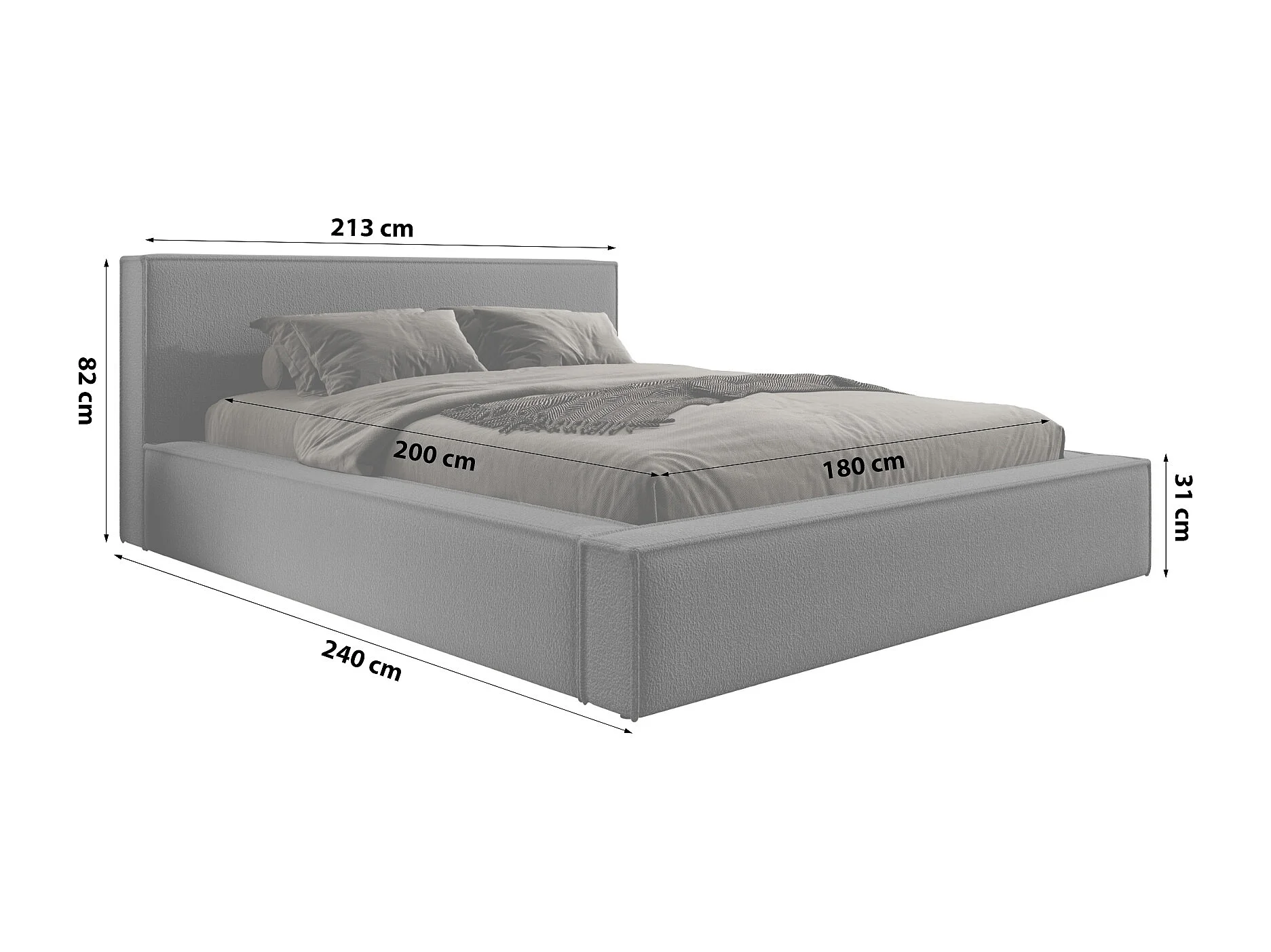 Lit coffre - 180x200 cm - en tissu chenille gris - ALEGRE