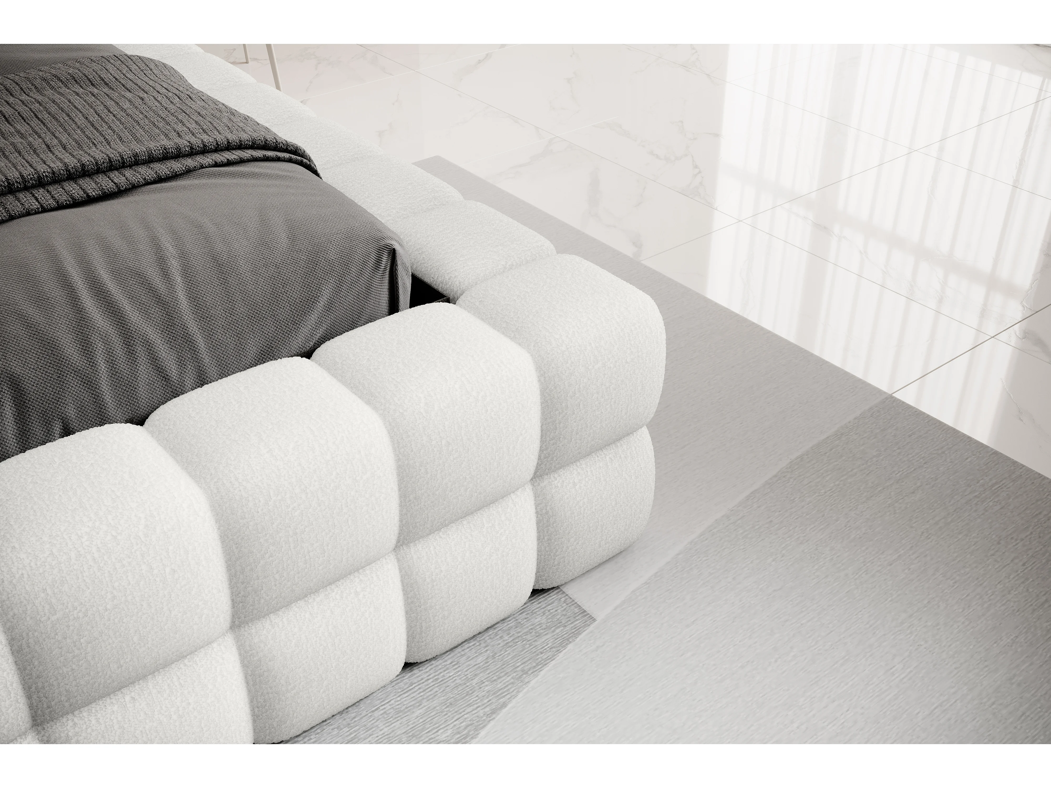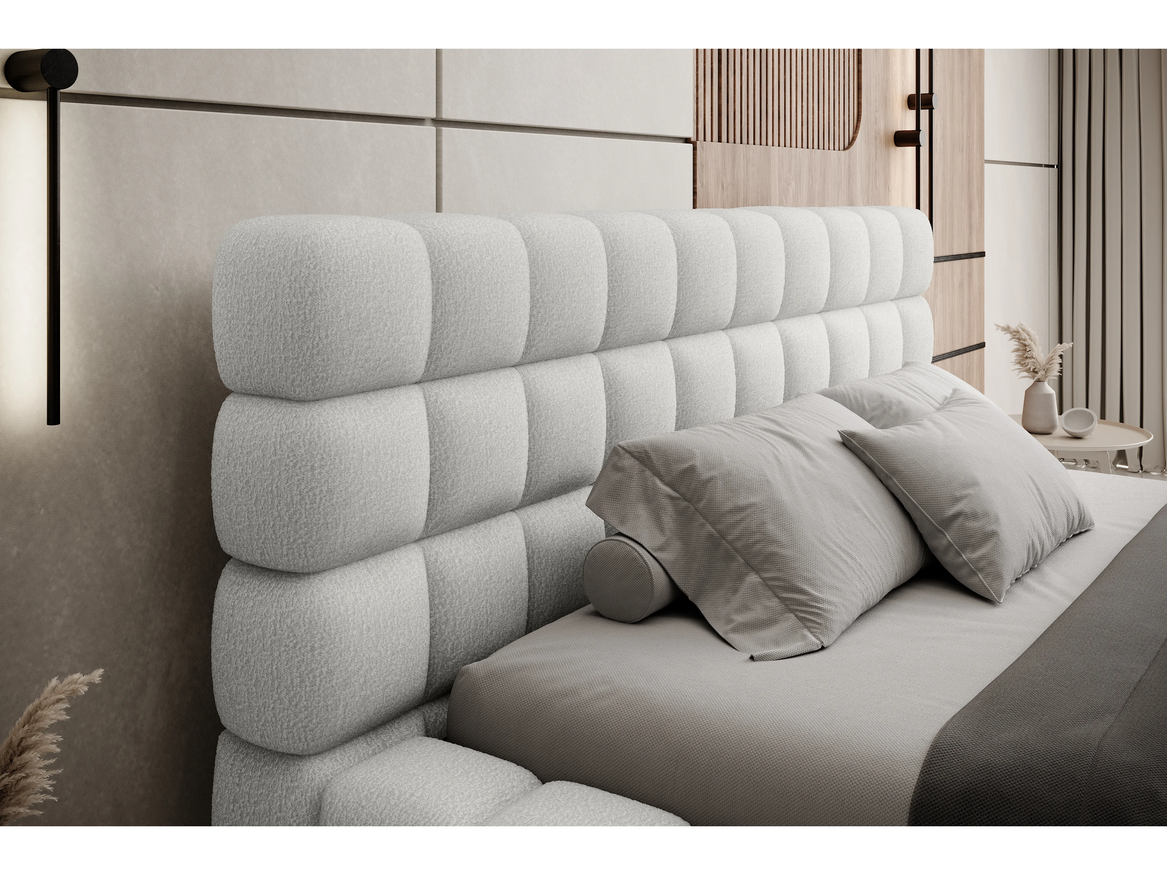 Lit coffre design avec capitonnage tissu à bouclettes Kaizer-Couleur Blanc-180x200