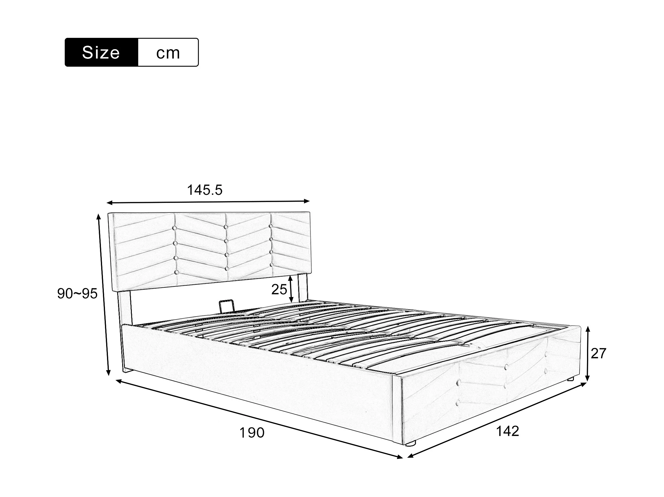 Lit coffre adulte 140x190 cm - Tête de lit réglable, tissu en velours gris (sans matelas)