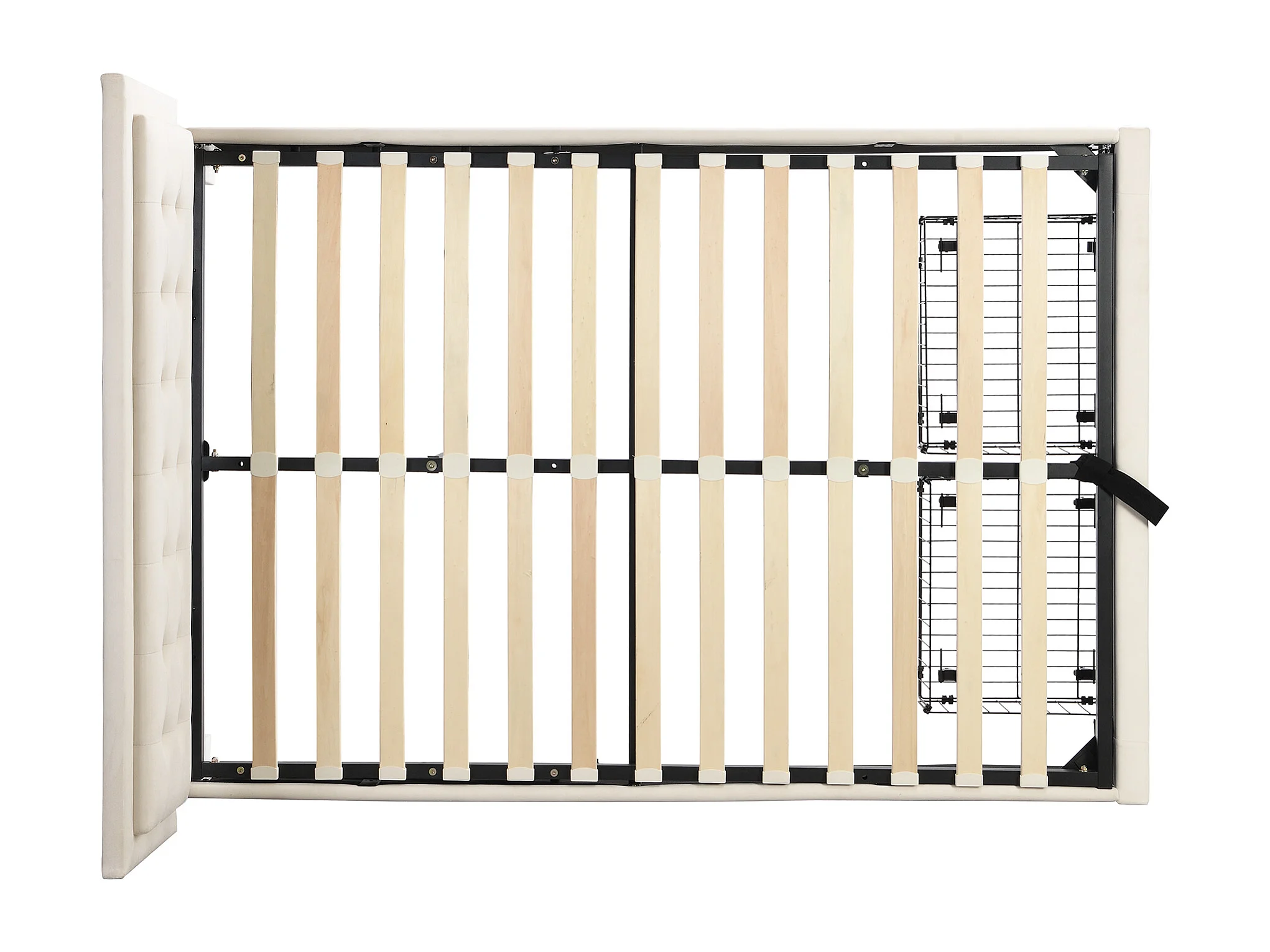 Lit coffre adulte 140x200 cm avec Tête de lit et tiroirs - Velours beige (sans matelas)