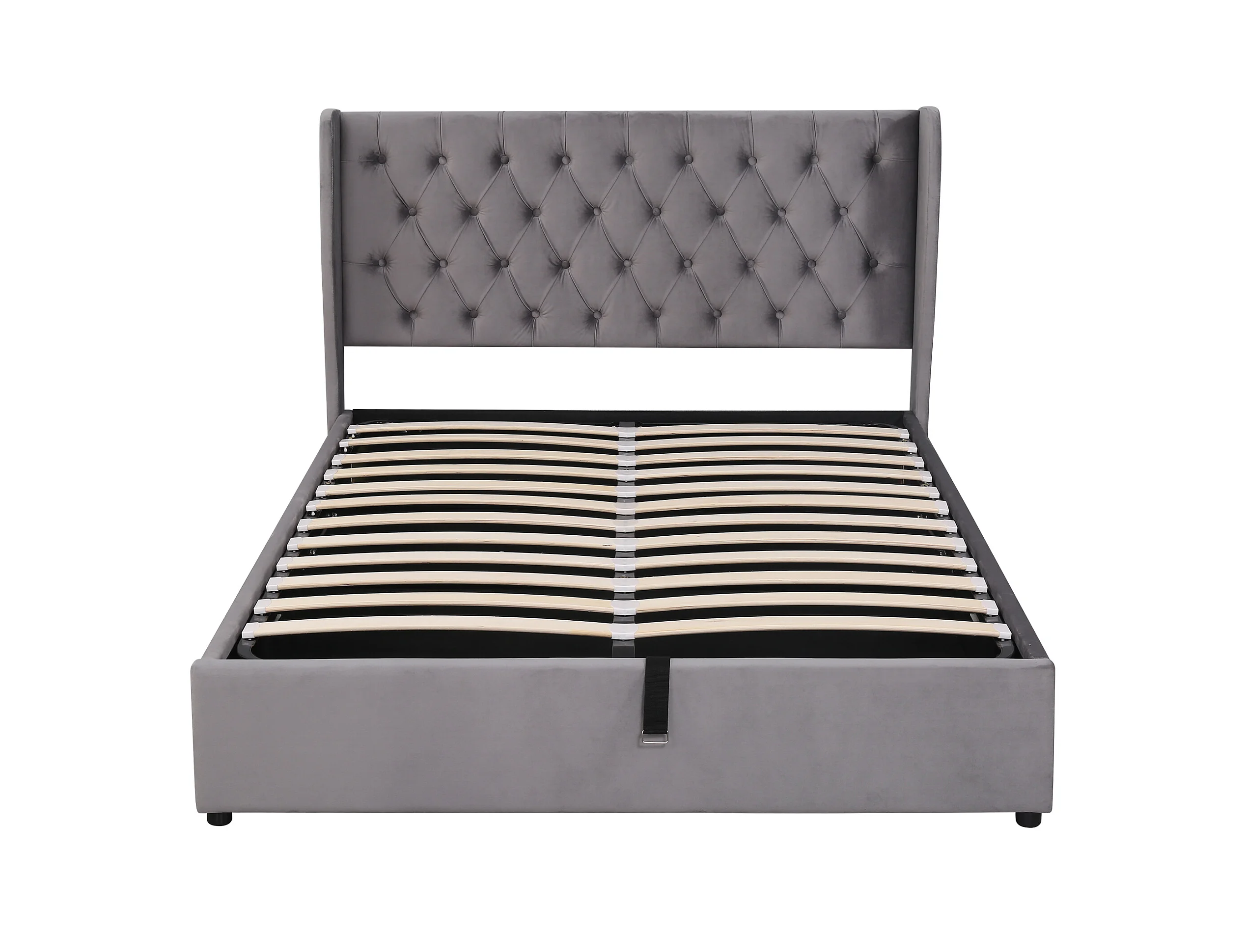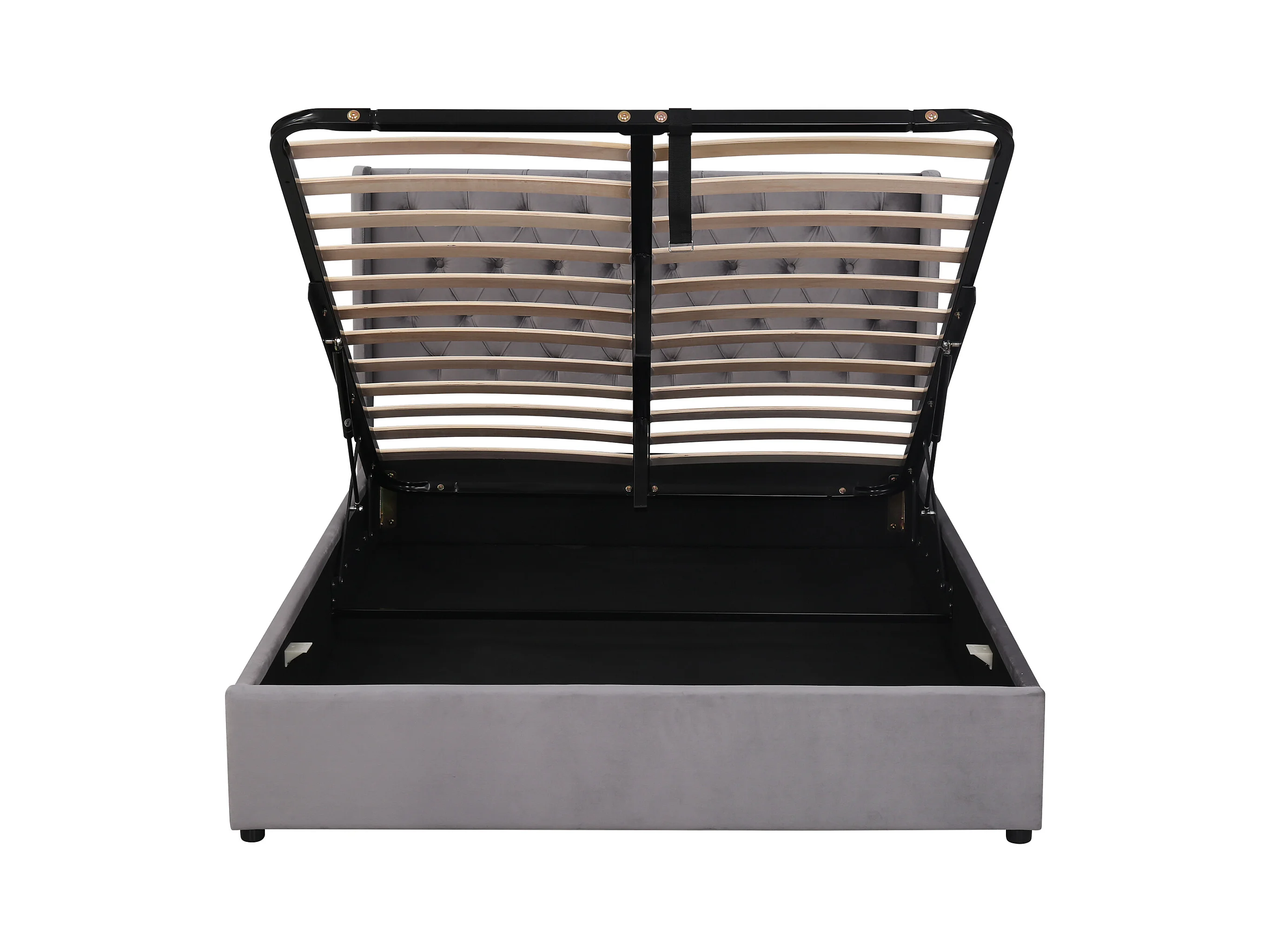 Lit coffre 140x200 cm, lit adulte double avec rangement et tête de lit capitonné - velours gris - sans matelas