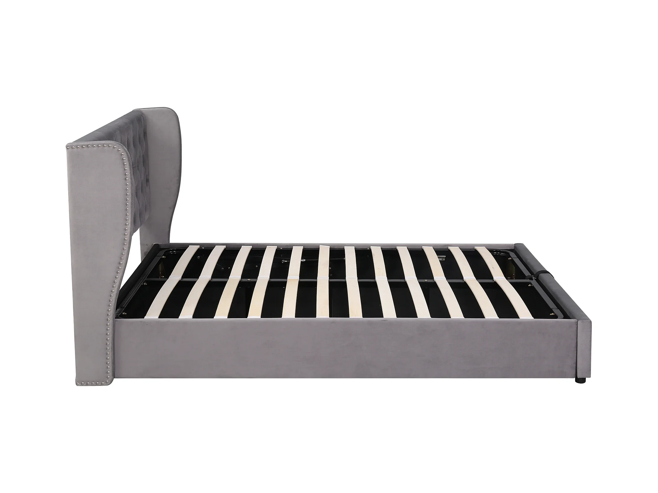 Lit adulte 140x200 cm lit double avec 4 tiroirs et tête de lit capitonné - velours gris - sans matelas
