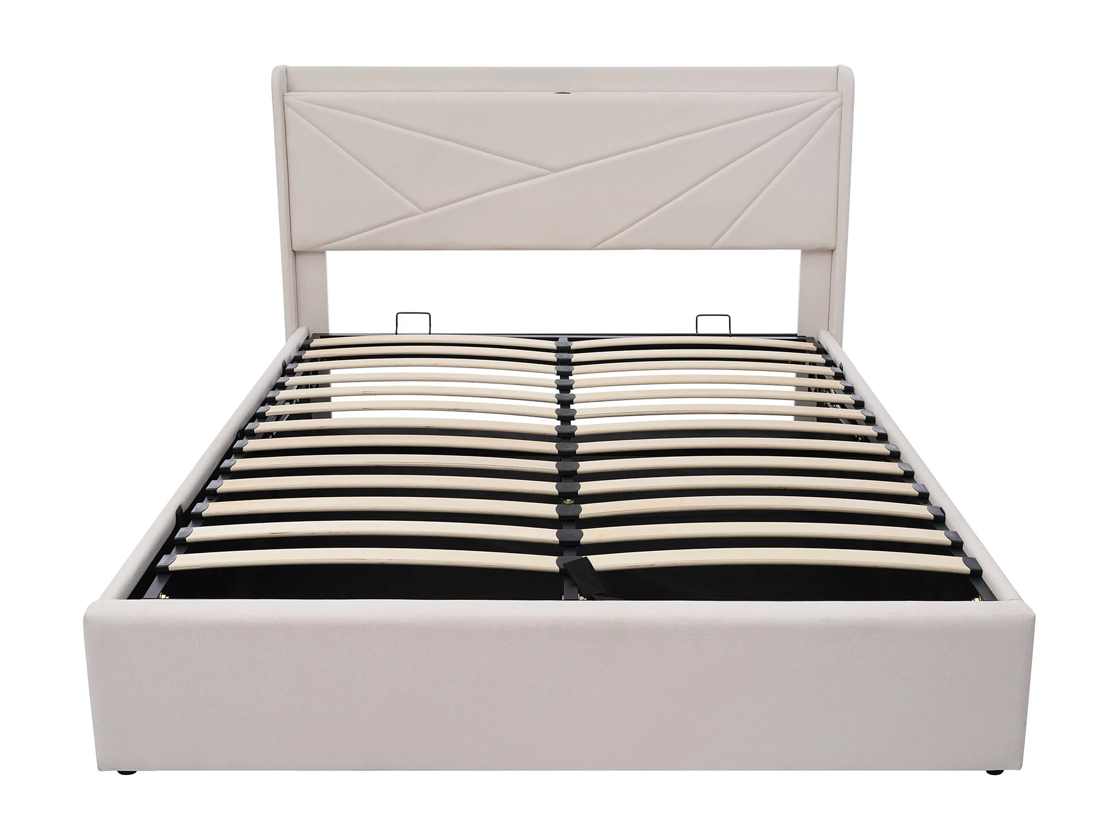 Lit coffre adulte 140x200 cm, tête de lit USB-C, sommier à lattes, sans matelas