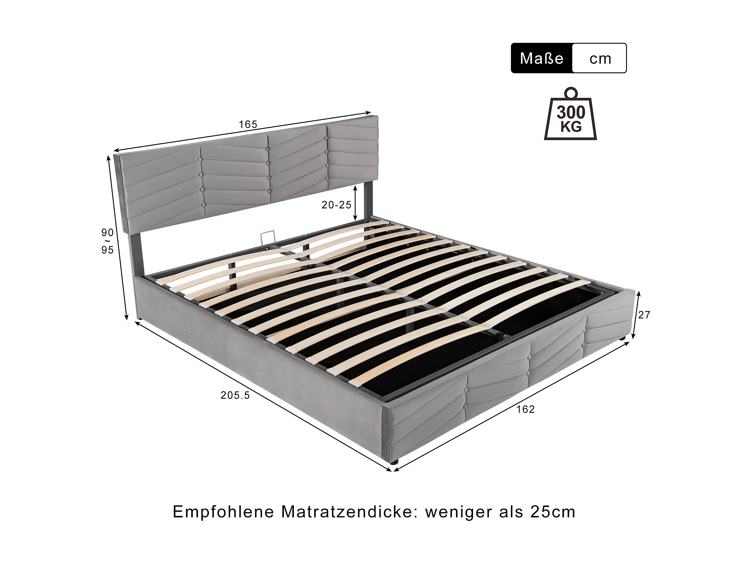 Lit coffre adulte 160x200 cm, style contemporain avec tête de lit réglable, en velours gris(sans matelas)