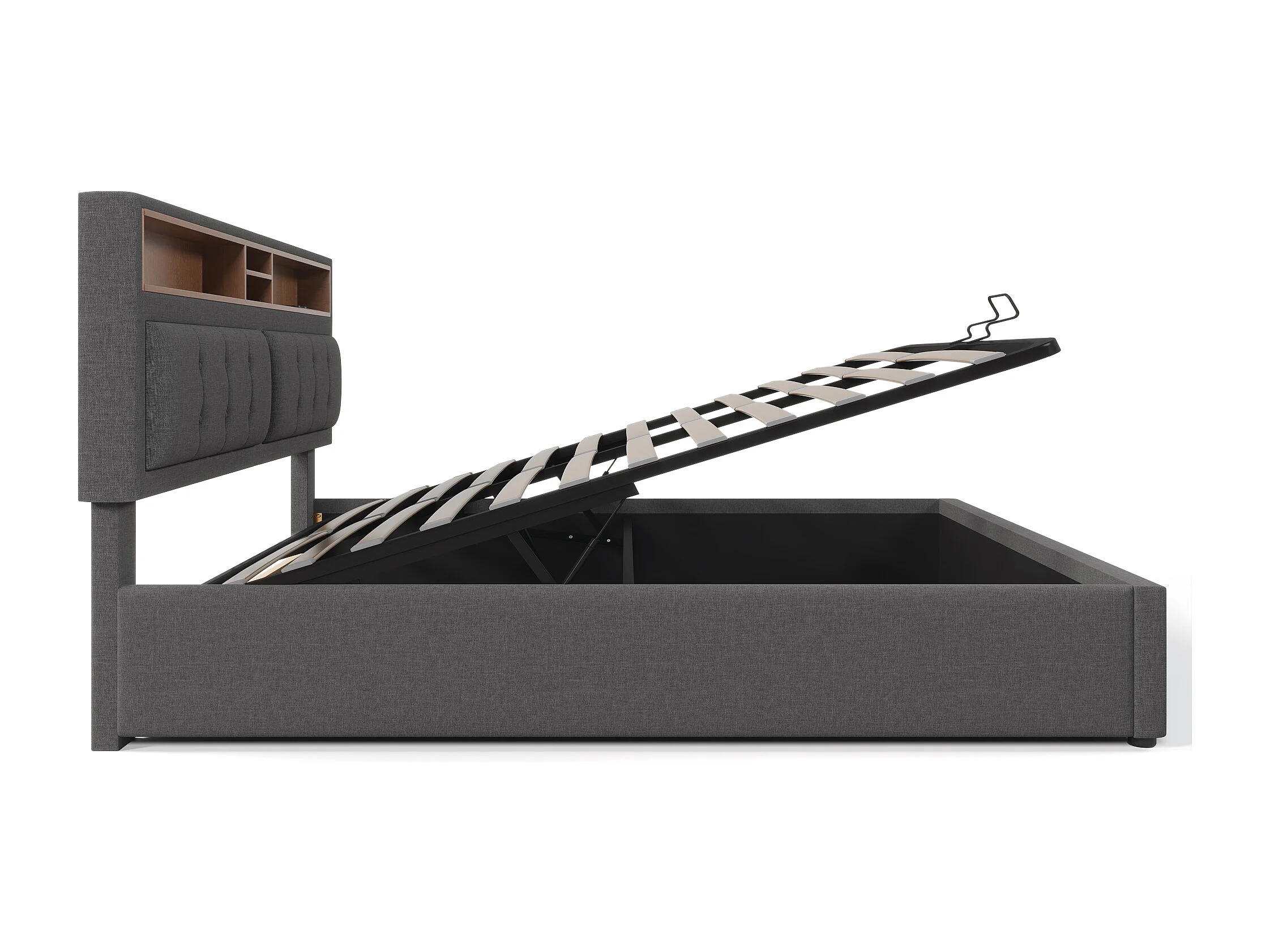 Lit coffre adulte 160x200 cm avec Tête de lit LED,charge USB-C, Lin gris,sans matelas