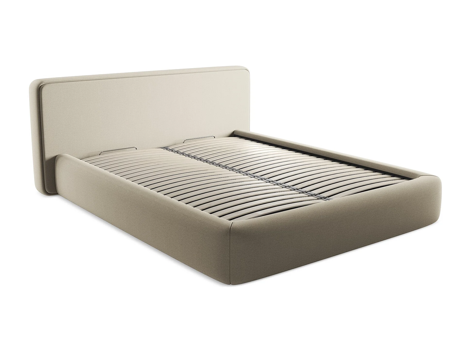 Lit coffre en tissu bouclette 160 x 200 - beige - KIANA