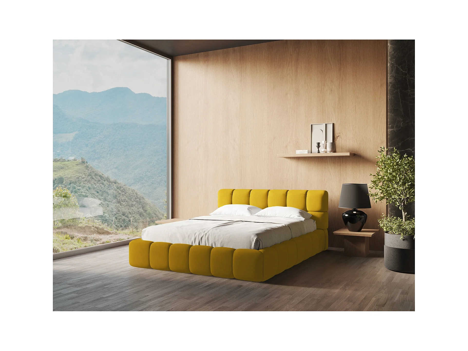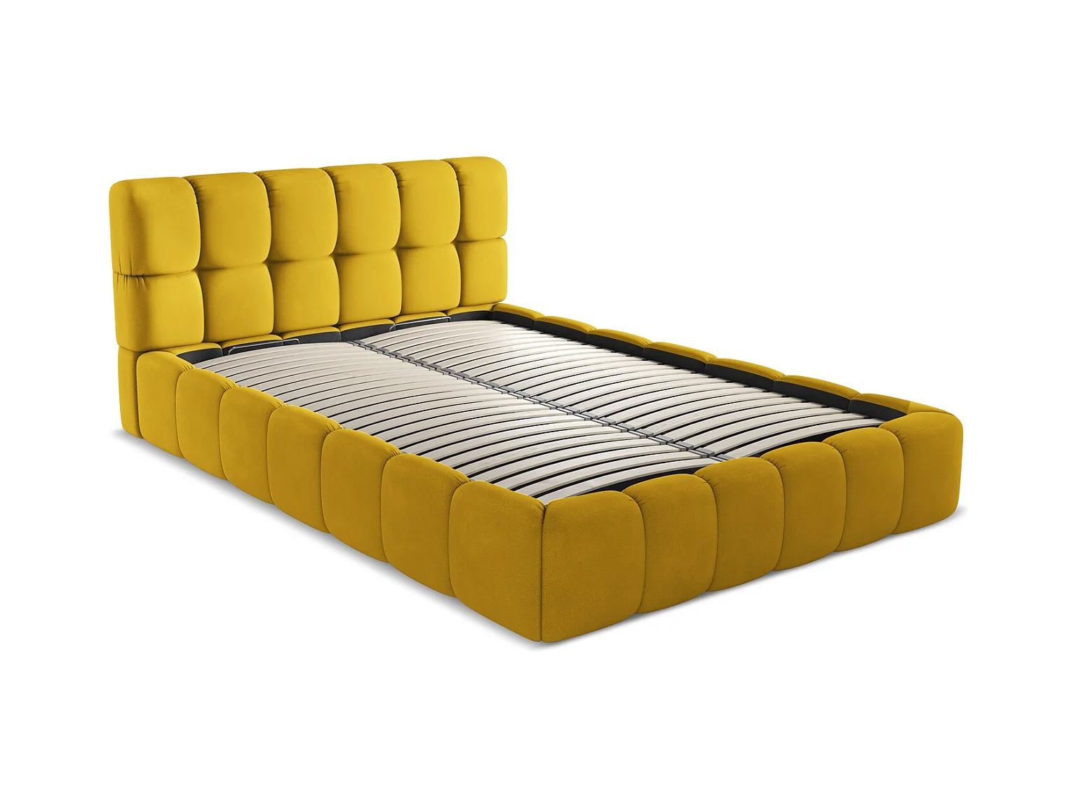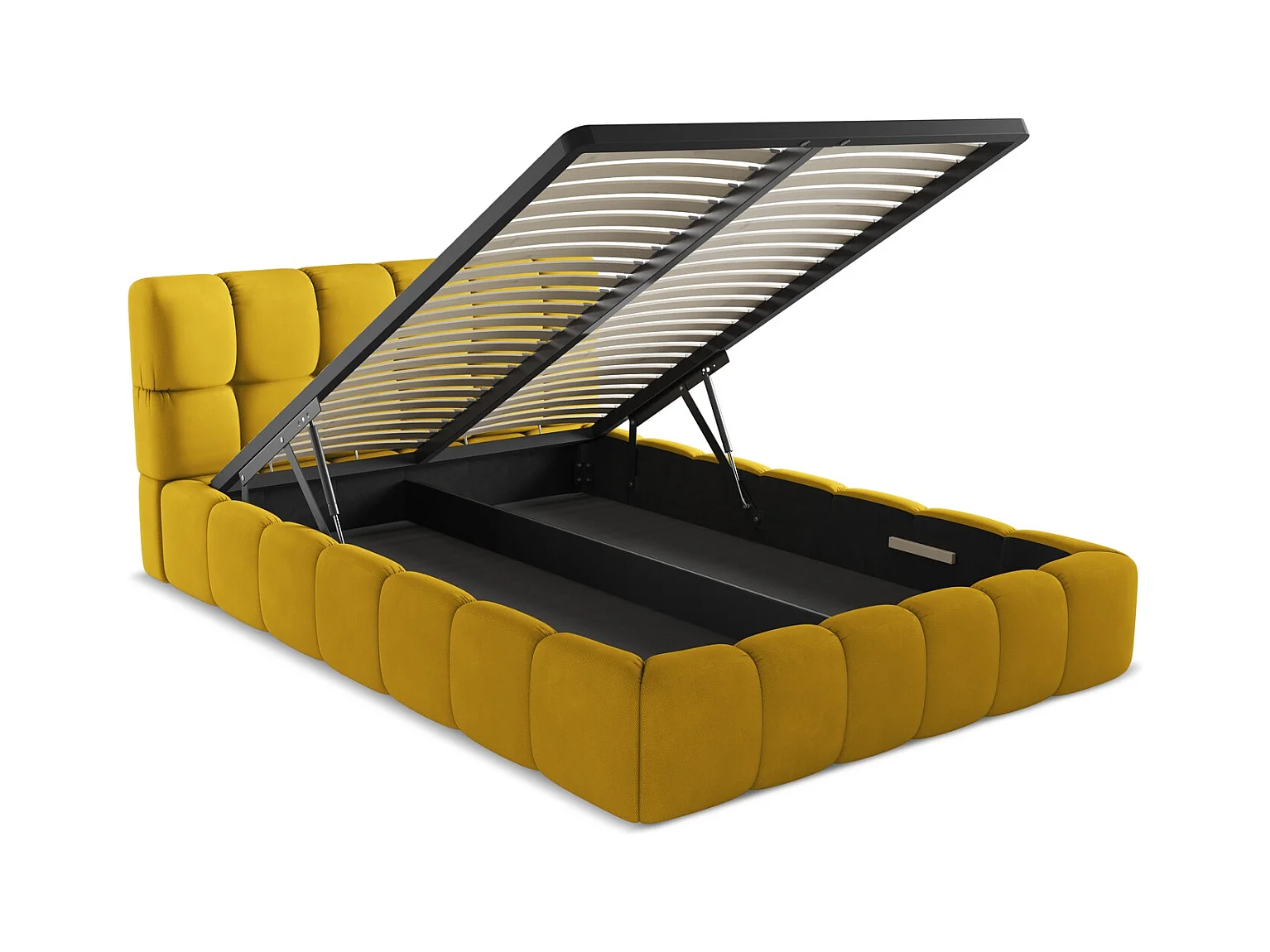 Lit coffre en tissu chenille 140 x 200 - moutarde - NALU
