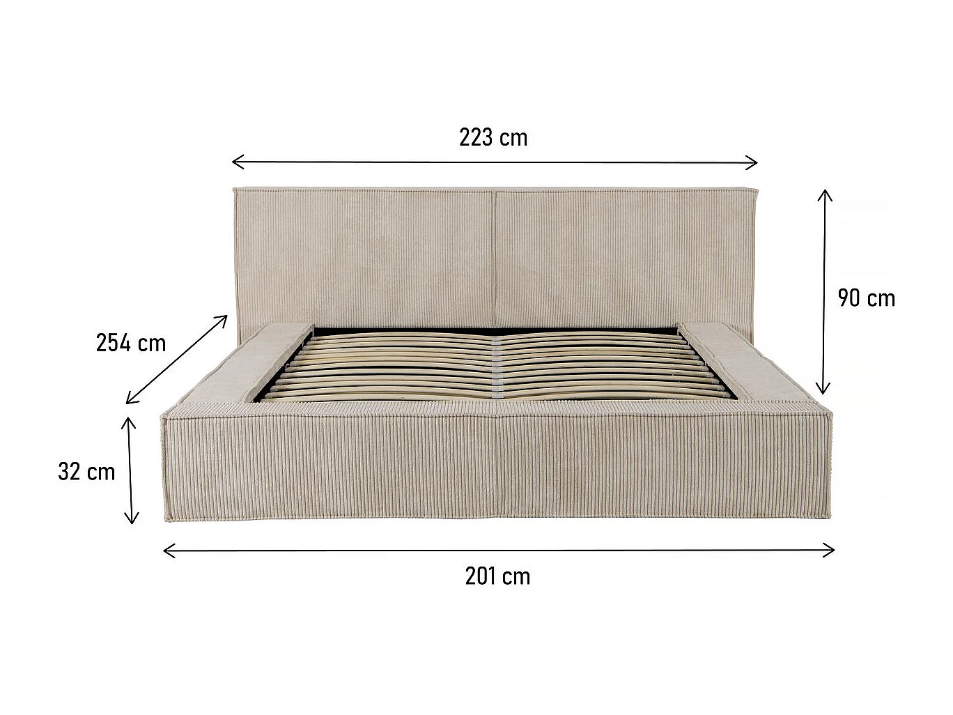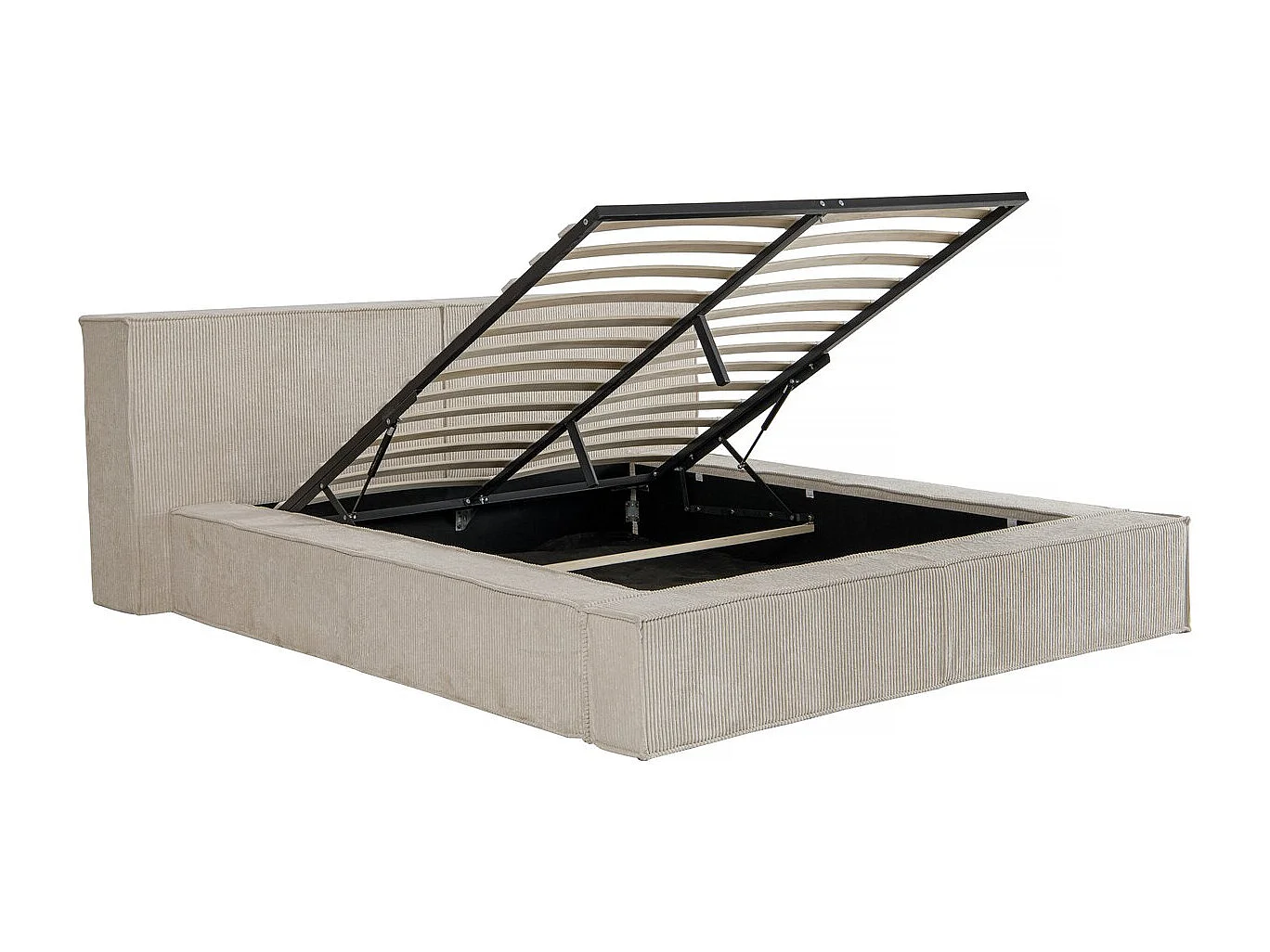 Lit coffre en velours côtelé "Courchevel" - 160 x 200 cm - Beige