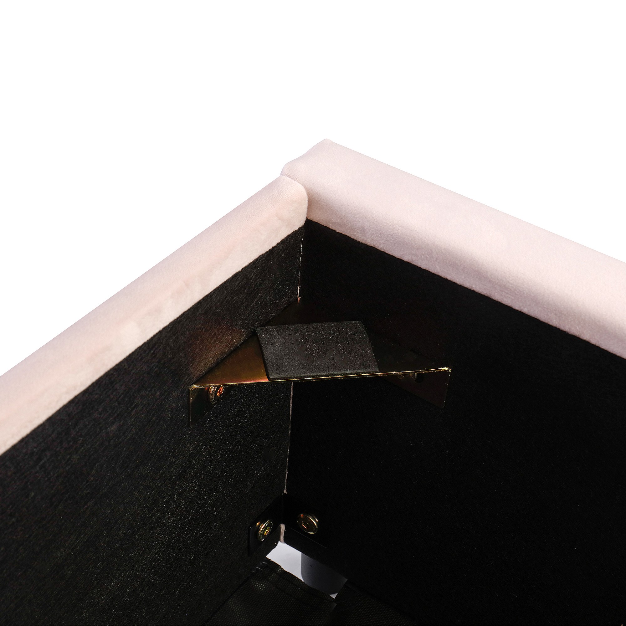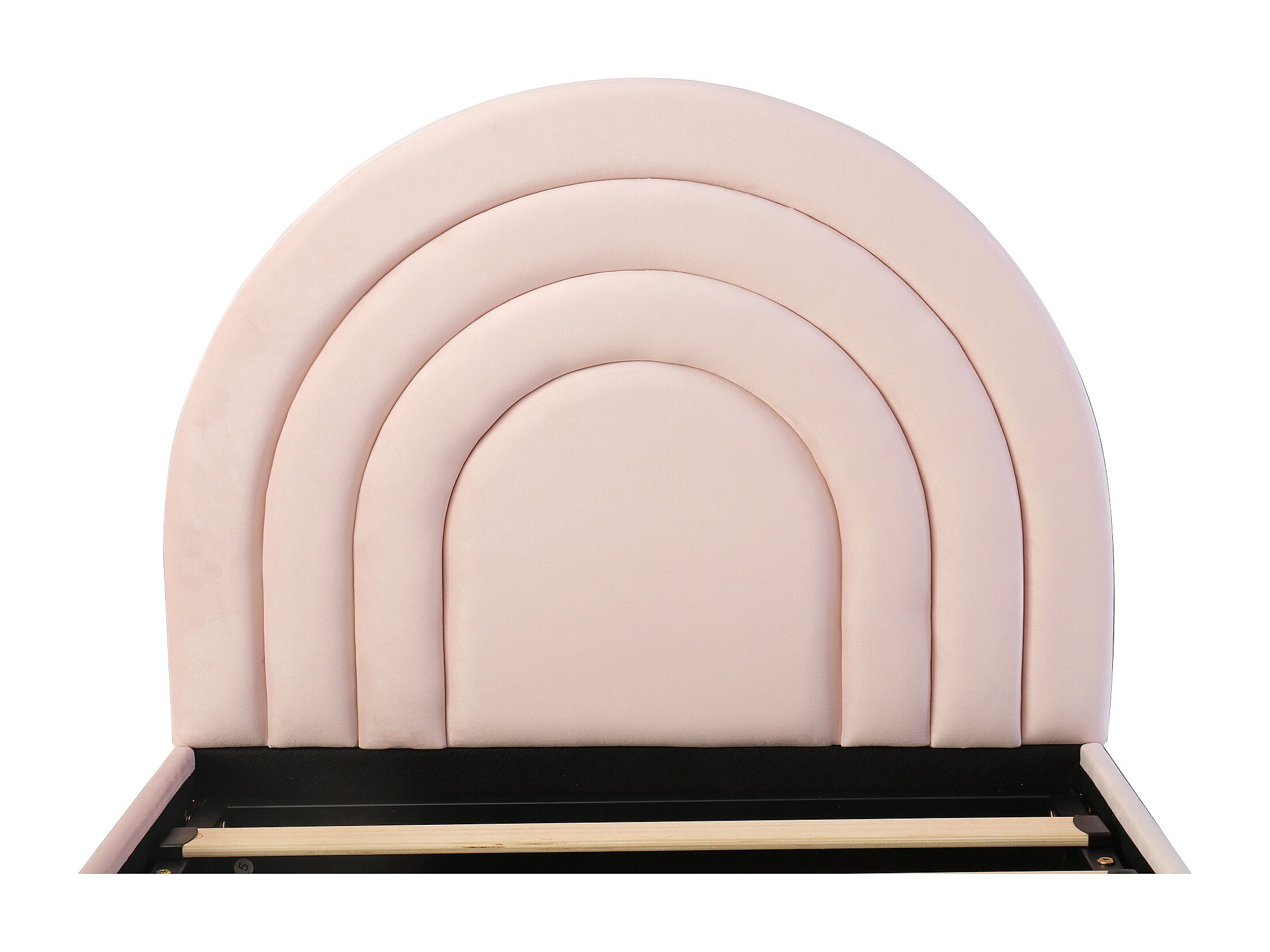 Lit coffre enfant 90x200 cm avec sommier à lattes et tête de lit, velours rose - sans matelas