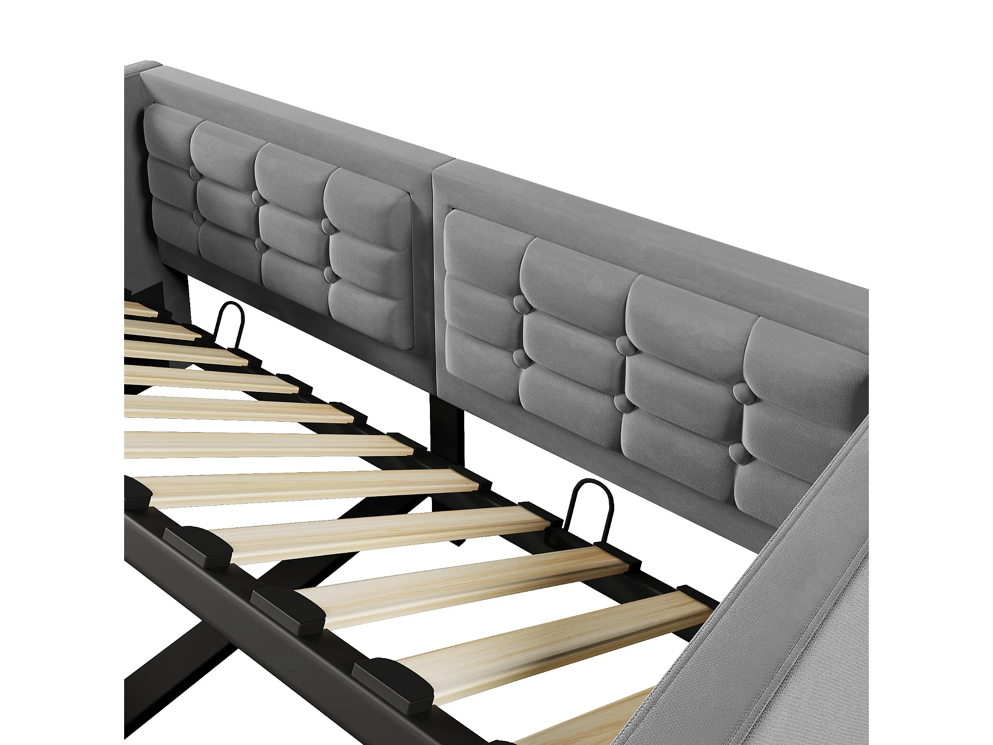 Lit coffre 90x200 cm avec rangement hydraulique et station de charge USB Type C, avec lattes, en velours, gris (Sans matelas)