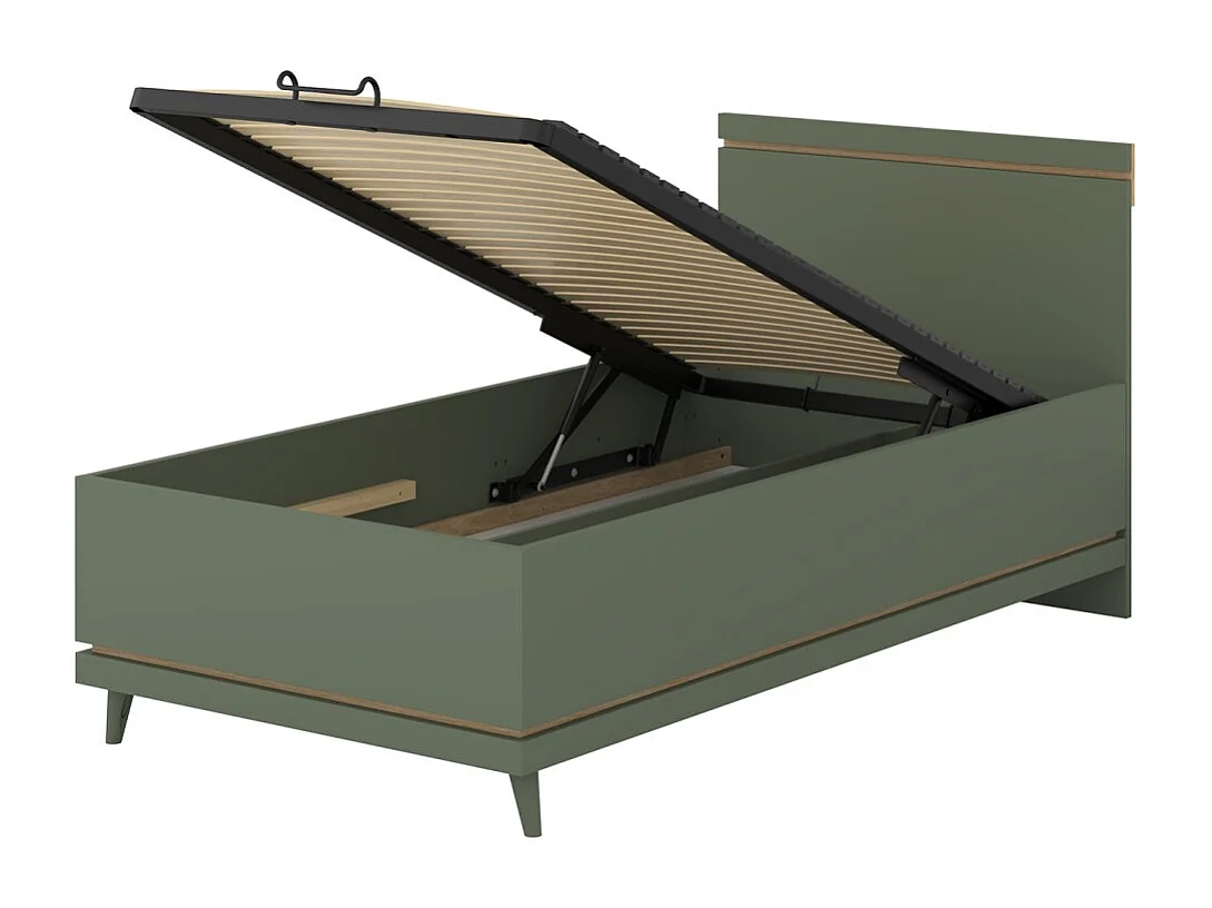 Lit coffre enfant NOKI – 100x200 cm vert et bois – Style scandinave