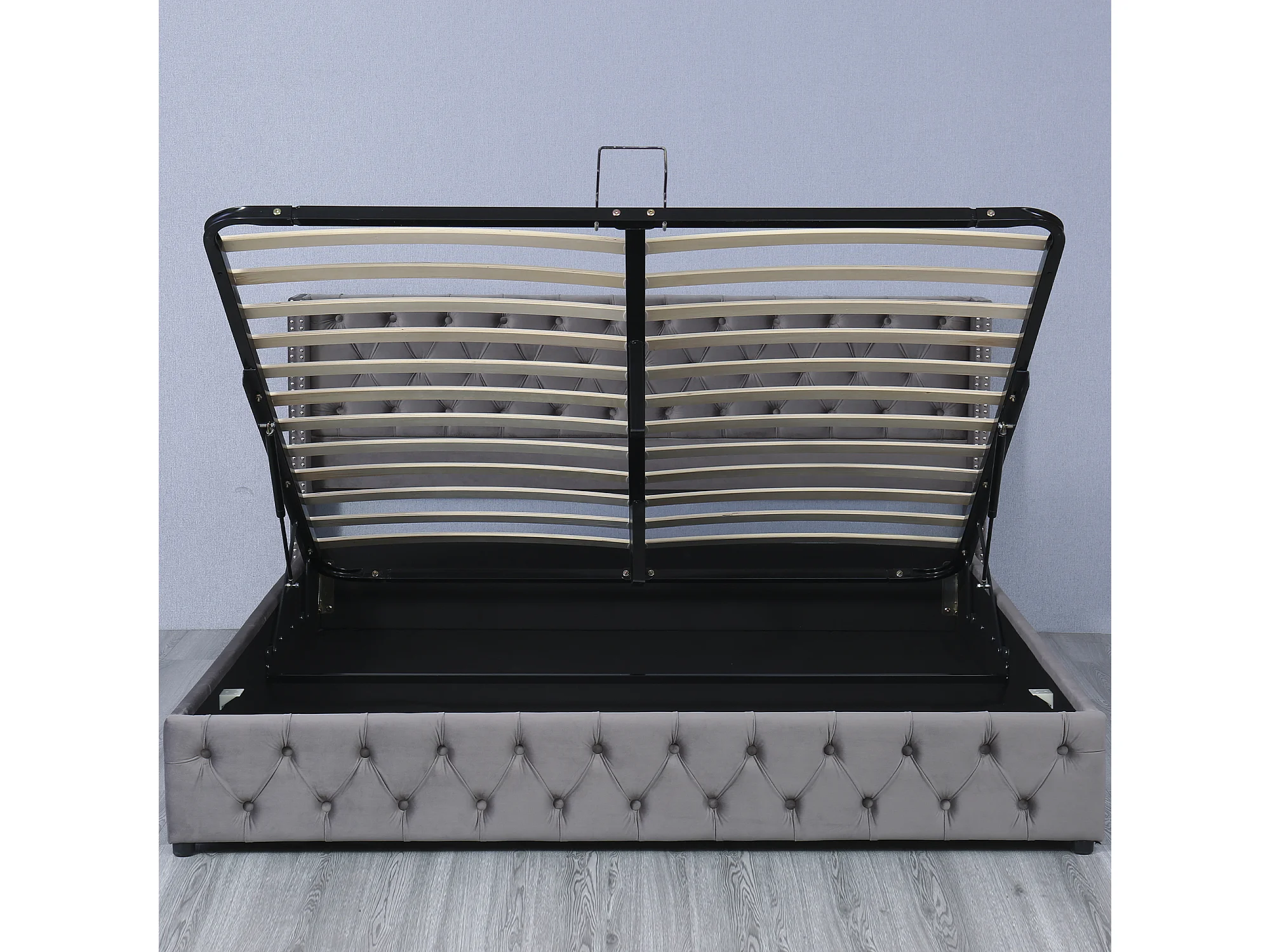 Lit Coffre adulte 180x200cm Gris en velours, lit de rangement, Sommier à lattes, Sans Matelas