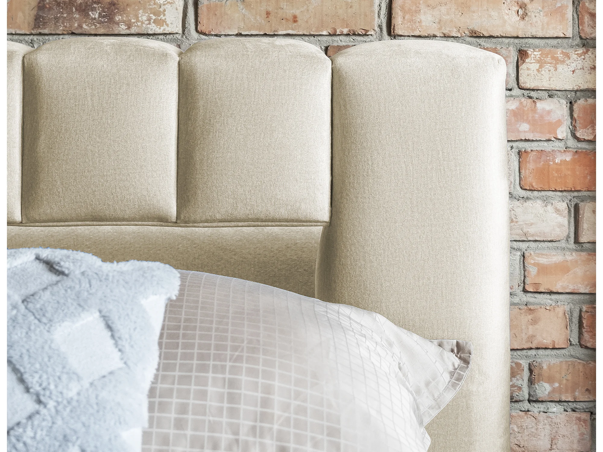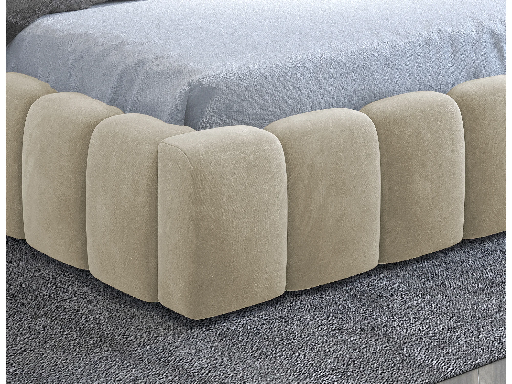 Lit design avec tête de lit et coffre capitonné velours beige Prince - 3 tailles-180x200