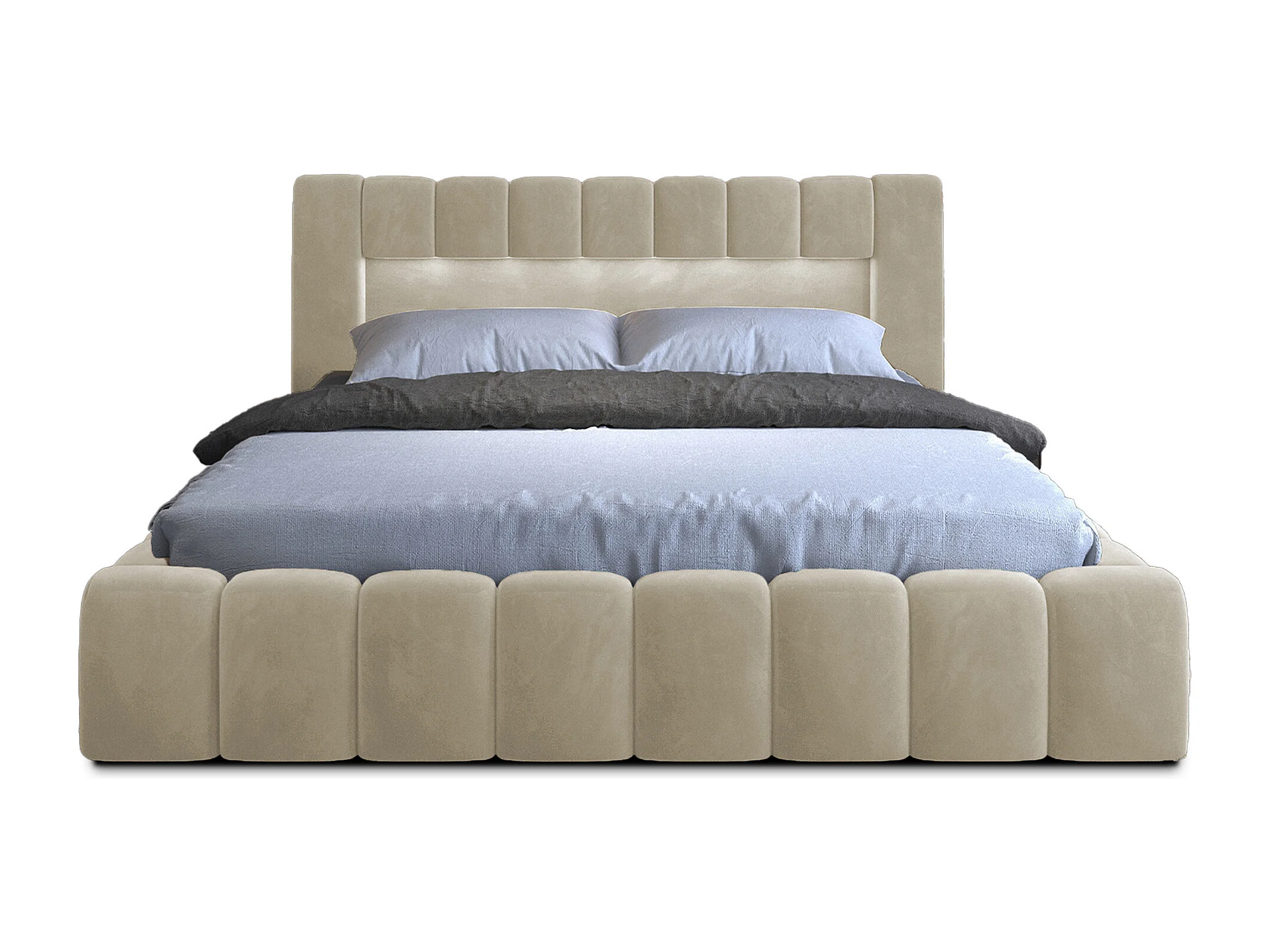 Lit adulte avec coffre de rangement Vareza – Velours matelassé-Beige-180x200