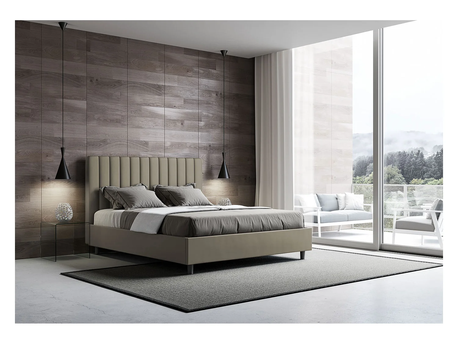 Lit coffre rembourrée 160x190 similicuir cappuccino Agueda