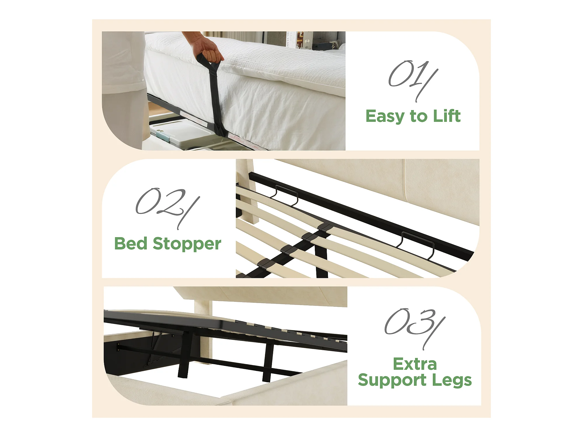 Lit coffre en velours avec sommier à lattes + tête de lit réglable - 160x200cm - Beige