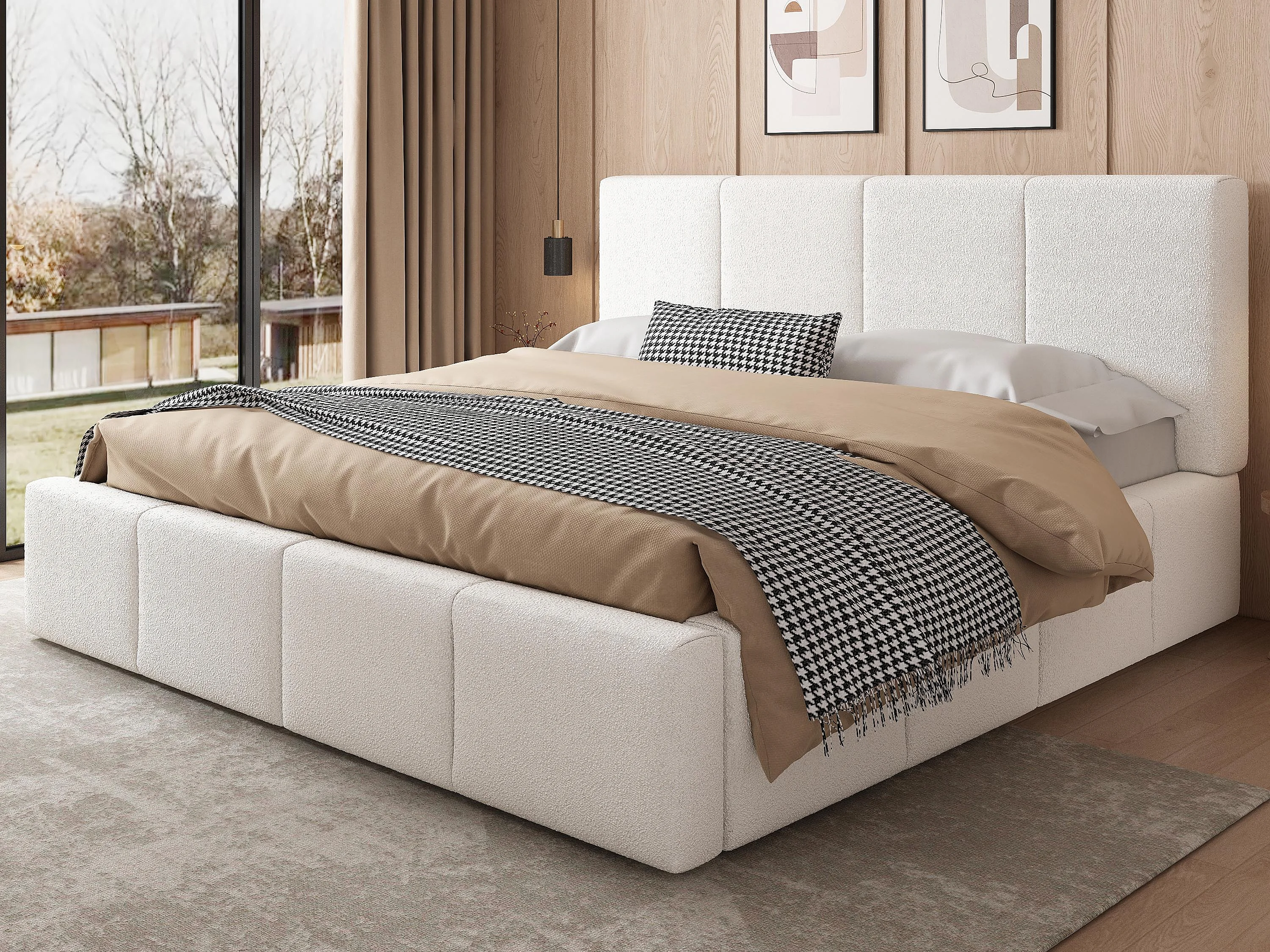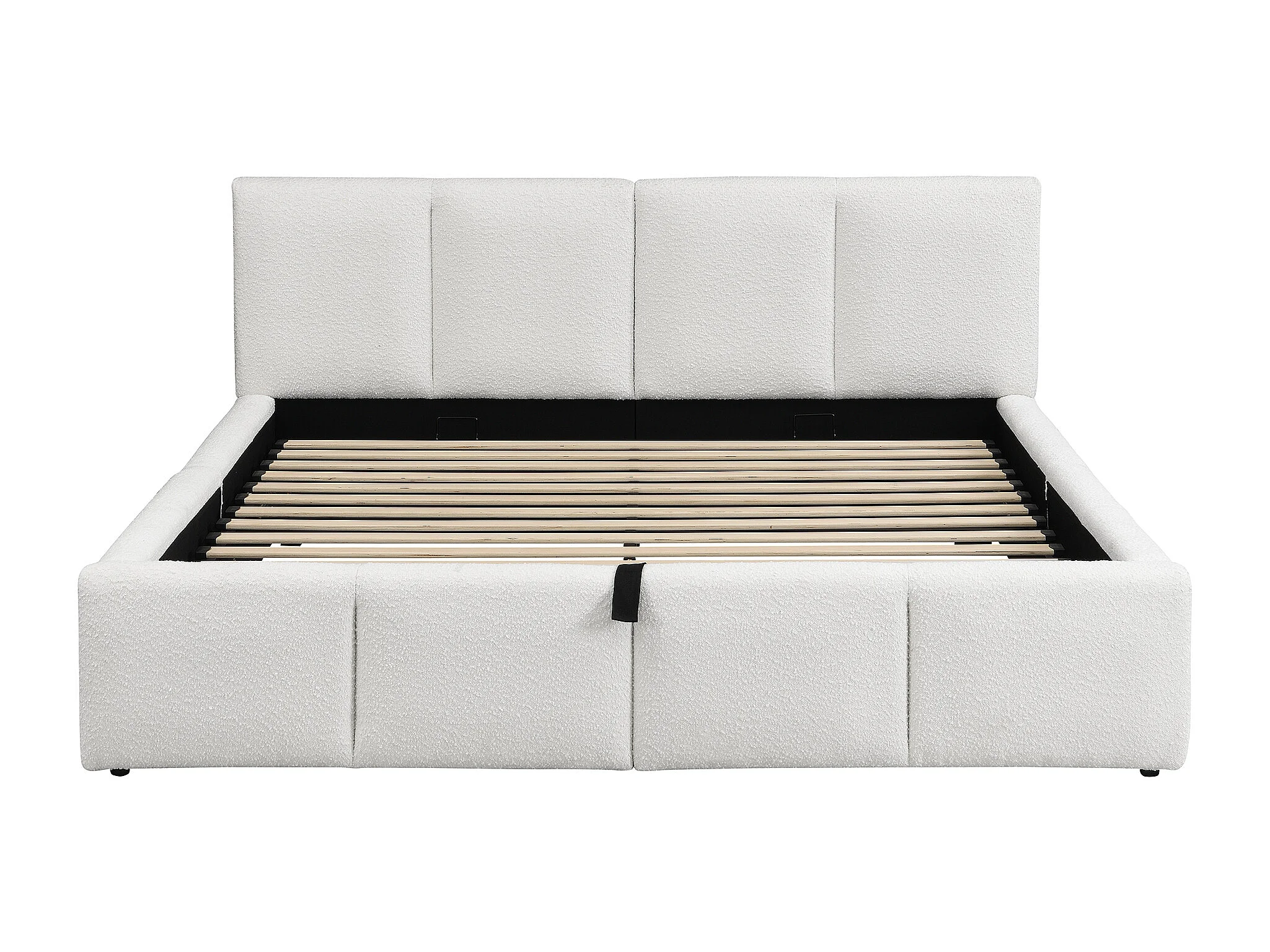 Lit coffre rembourré 180x200 cm - avec espace de rangement - Tissu bouclé - Beige (matelas non inclus)