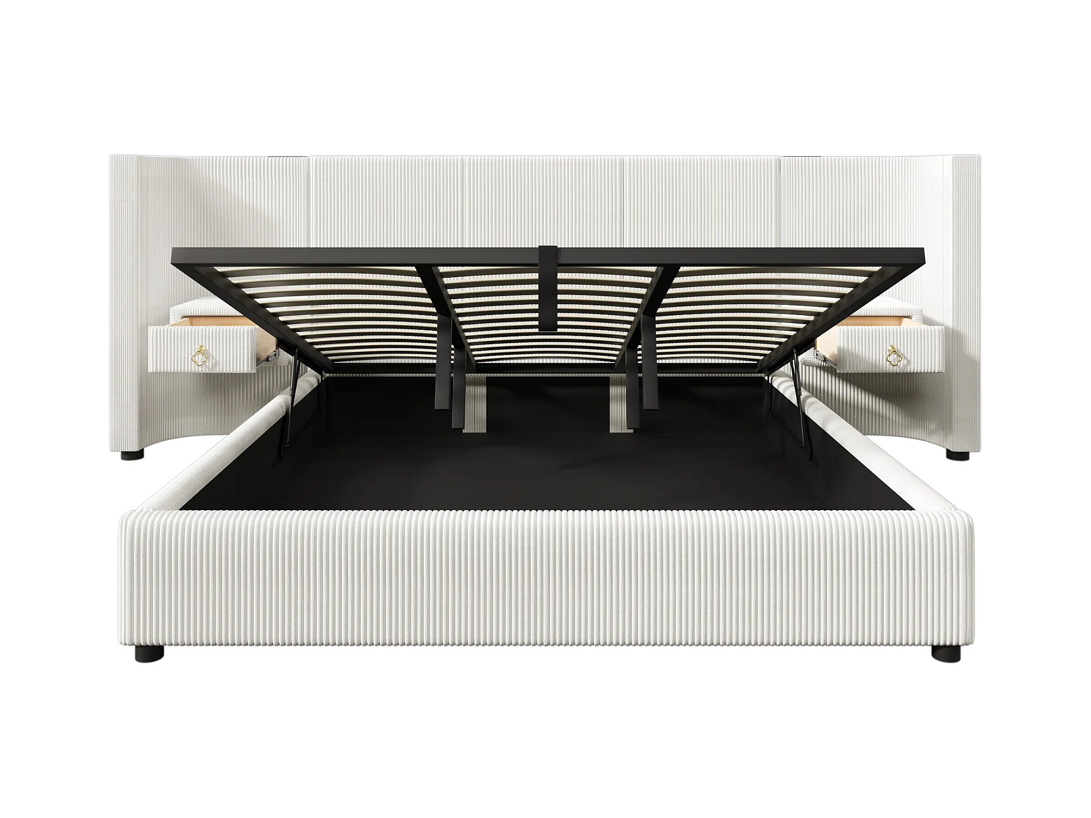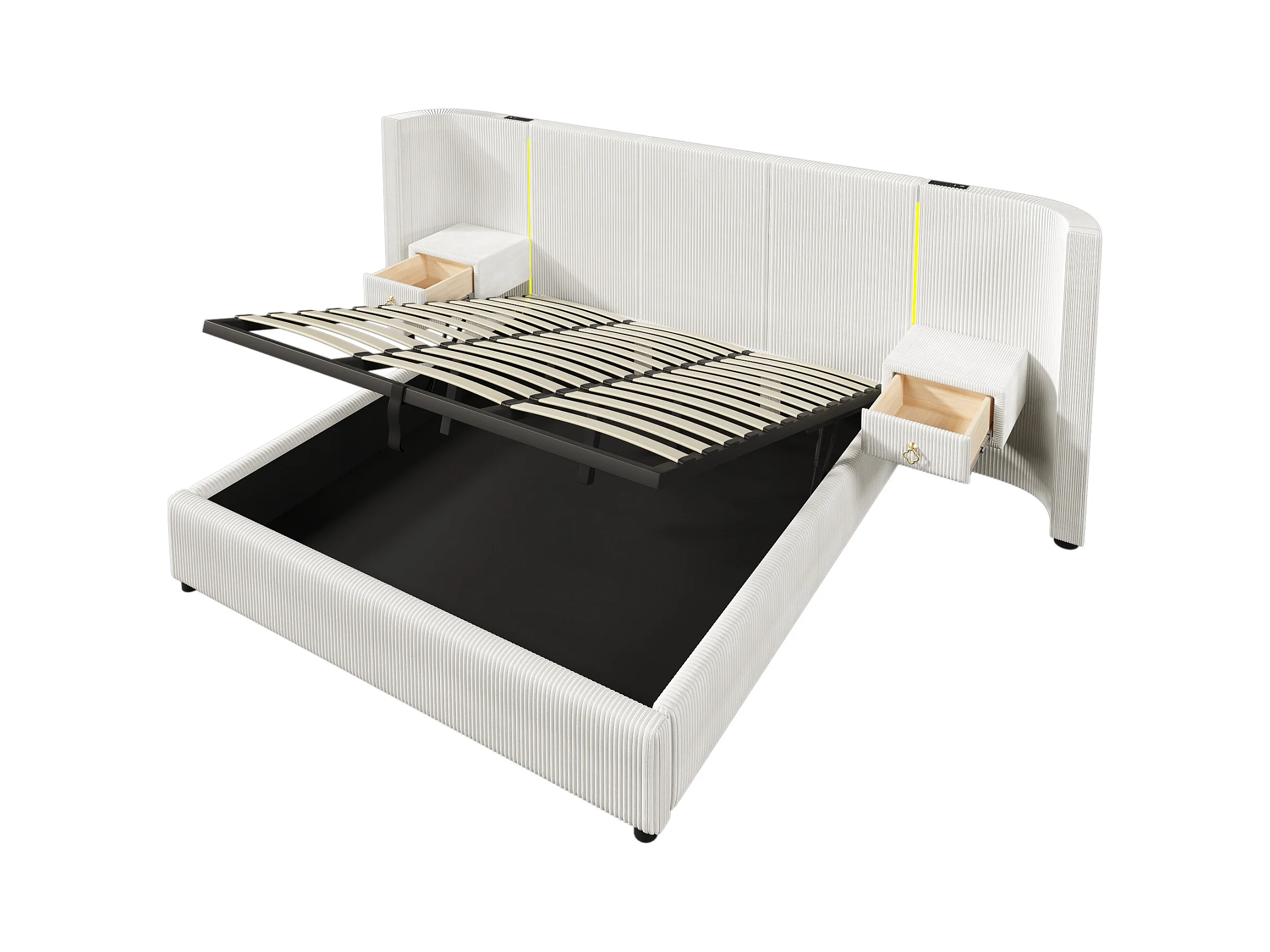 Lit coffre rembourré 180x200cm - avec bande lumineuse LED - avec 2 tiroirs - USB+TYPE-C - velours - beige (matelas non inclus)