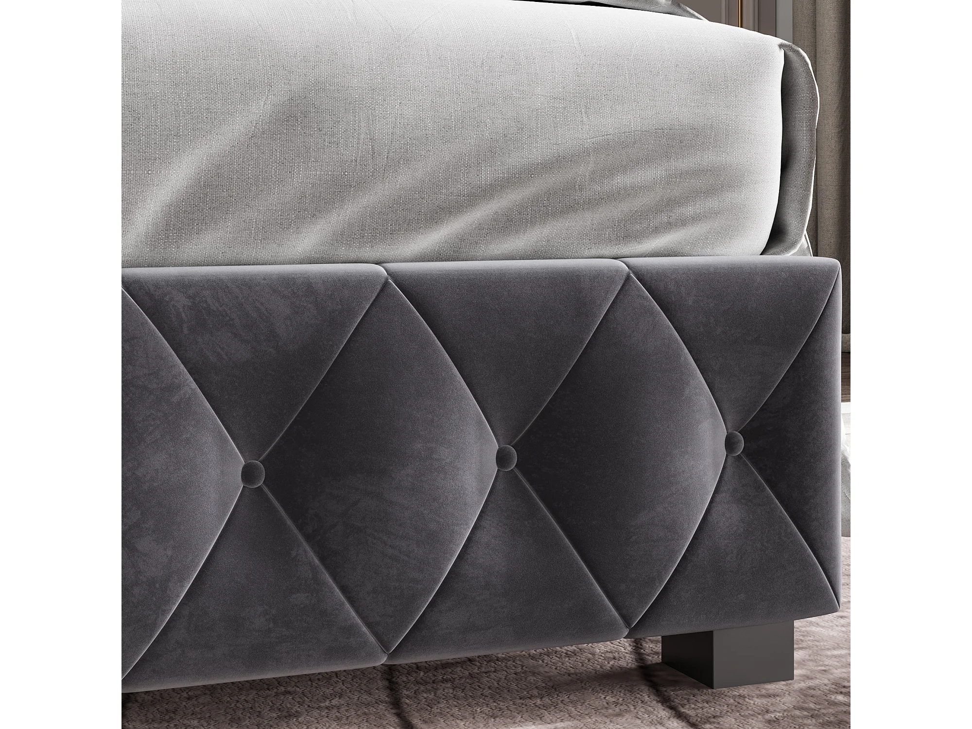 Lit coffre rembourré en velours - décoré de rivets - avec sommier à lattes - 140x200cm - Gris
