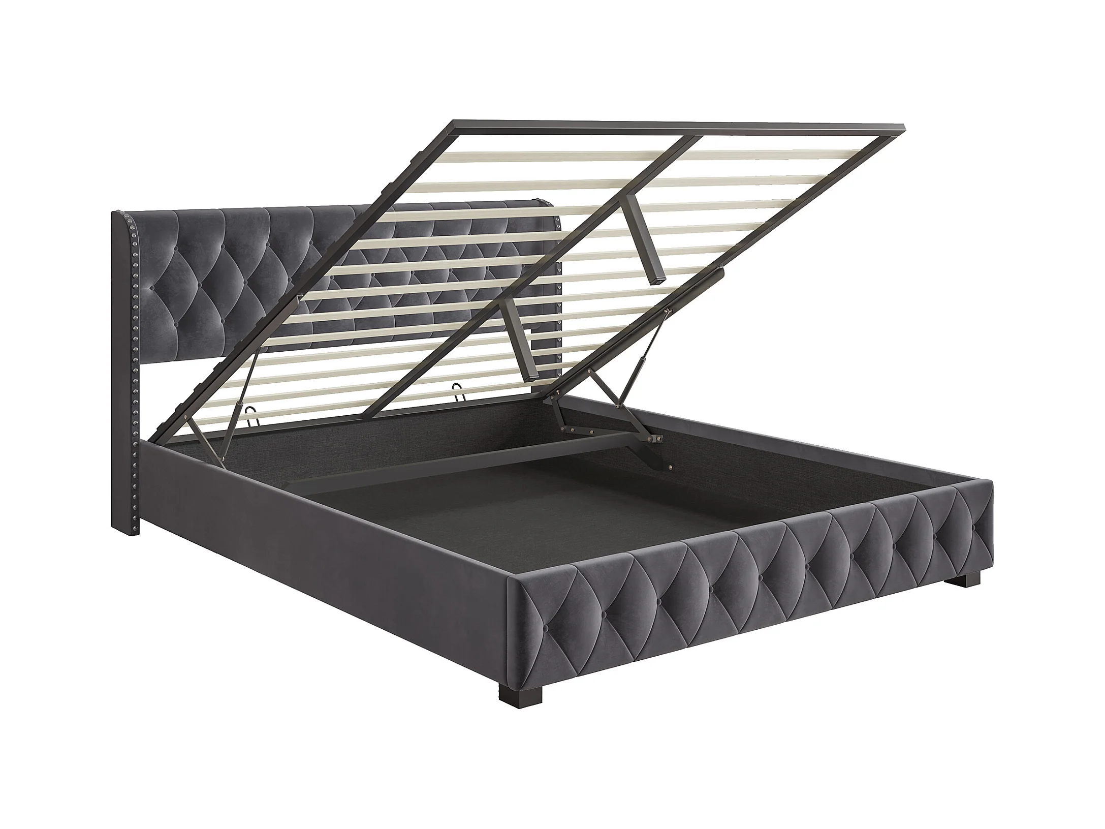 Lit coffre rembourré en velours - décoré de rivets - avec sommier à lattes - 180x200cm - Gris