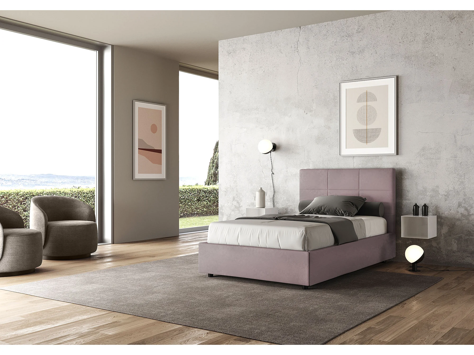 Lit 1 place et demi coffre rembourré 120x190 microfibre lilas Mika